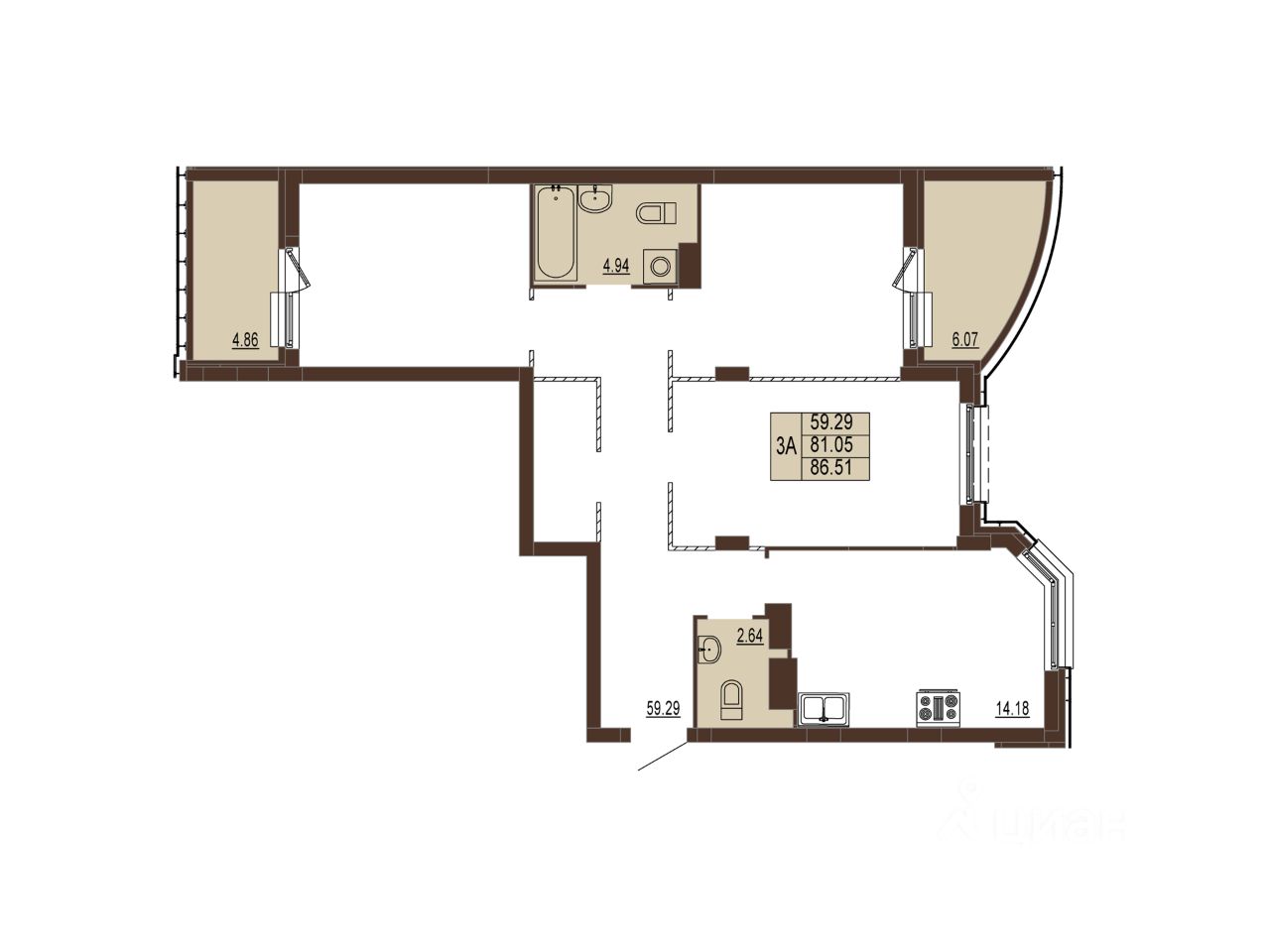 86 м² · Этаж 6 из 17