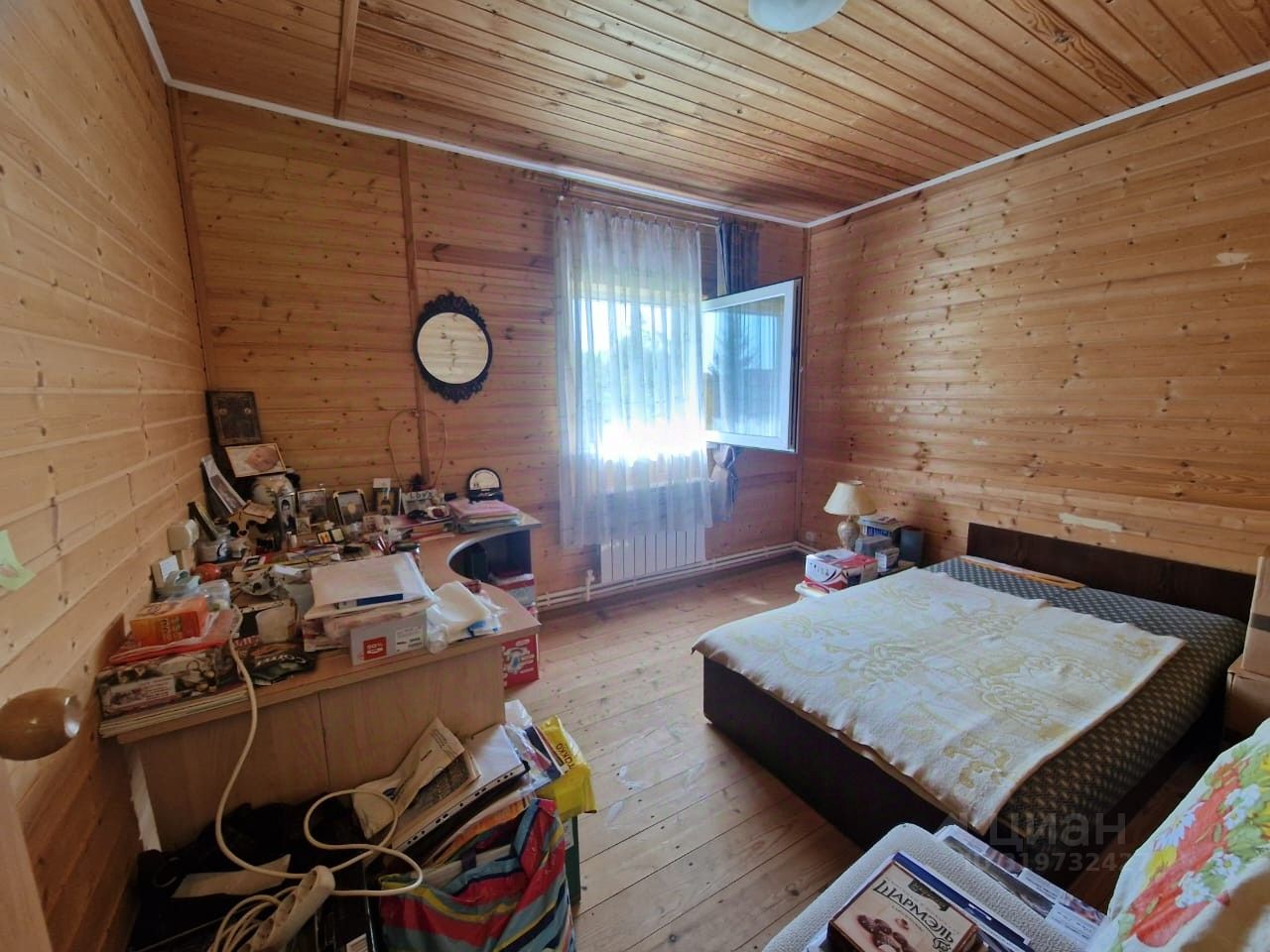 Продается жилой бревенчатый дом с участком в деревне Елькино. Деревня Елькино, Александровского р-на Владимирской обл., 113 км от МКАД по Ярославскому шоссе. Деревня расположена в 4 км на восток от города Александрова на автодороге Александров — Владимир. Входит в состав Андреевского сельского поселения. *ДОМ: площадь 155,4 кв.м., 1 этажный с мансардой, фундамент-ленточный, стены-бревно. Планировка: 1-ый этаж -входная зона с террасой, коридор, котельная и кухня-гостиная, одна изолированная комната, входная металлическая дверь повышенной прочности и надёжности, кровля - металлочерепица, гараж. Оборудован коммуникациями: магистральный газ, электроэнергия 15 кВт, автономная собственная скважина. Установлен газовый котёл и дублирующий твердотопливный, батареи отопления с антифризом в системе. Подключен internet. *УЧАСТОК: площадь 2500 кв.м., кадастровый номер 33:01:001215:156, межевание (координаты границ) имеется, прямоугольной формы, выровнен, сухой, огорожен. В деревне имеется фельдшерско-акушерский пункт, два магазина, сельский клуб. Осуществляется регулярное автобусное сообщение.