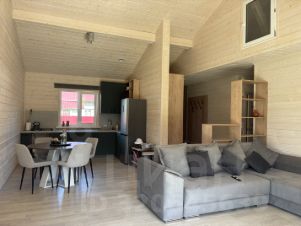 Новый, жилой дом для КРУГЛОГОДИЧНОГО проживания! Жилой посёлок в 88 км от Москвы по Ярославскому шоссе. Инженерные коммуникации подключены и разведены: отопление-магистральный газ, ТЁПЛЫЙ пол по всему периметру дома от газового двухконтурного котла (магистральный газ), водоснабжение-артезианская скважина, водоотведение-автономная канализация, свет-15 квт. ПЛАНИРОВКА: 1 эт. большой холл/тамбур, кухня/ гостиная с большими панорамными окнами высокие потолки, выход на террасу, котельная, три спальни, ванная комната с/у.Участок огорожен, на участке березки и ёлочки. В 15 минутах спокойным шагом от городской инфраструктуры. В 5 минутах автобусная остановка до ж/д ст. г.Струнино 20 минут.Школы, больницы, дет.сады, магазины, банки. Всё что нужно для загородной жизни. Прямое ж/д сообщение с Москвой (Ярославский вокзал). Звоните! Расскажем об окрестностях, объекте. Встретим, организуем просмотр в удобное для вас время.