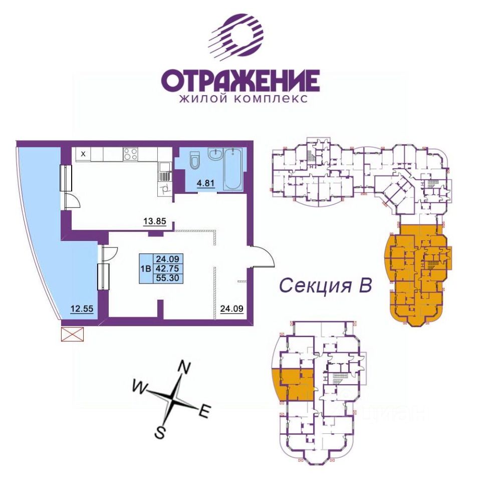 55 м² · Этаж 2 из 17