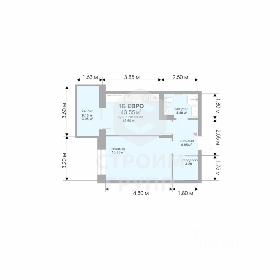 43 м² · Этаж 6 из 17