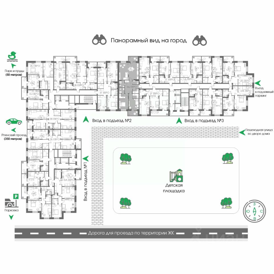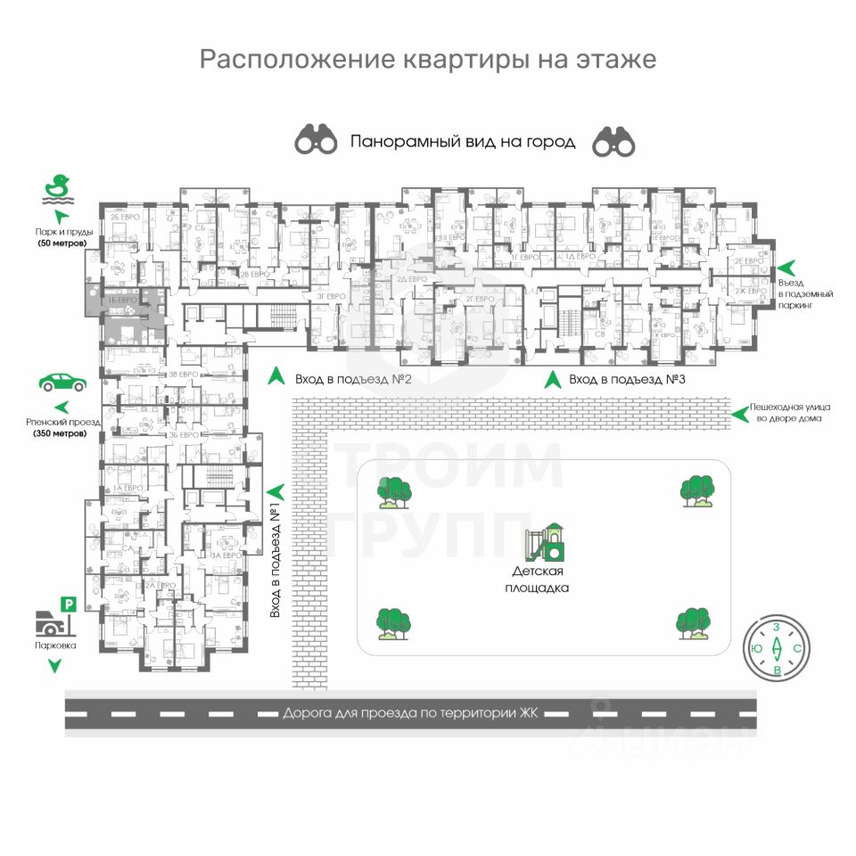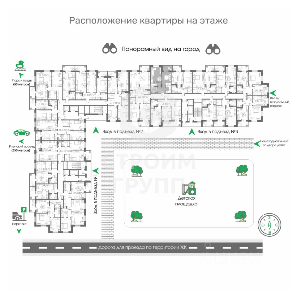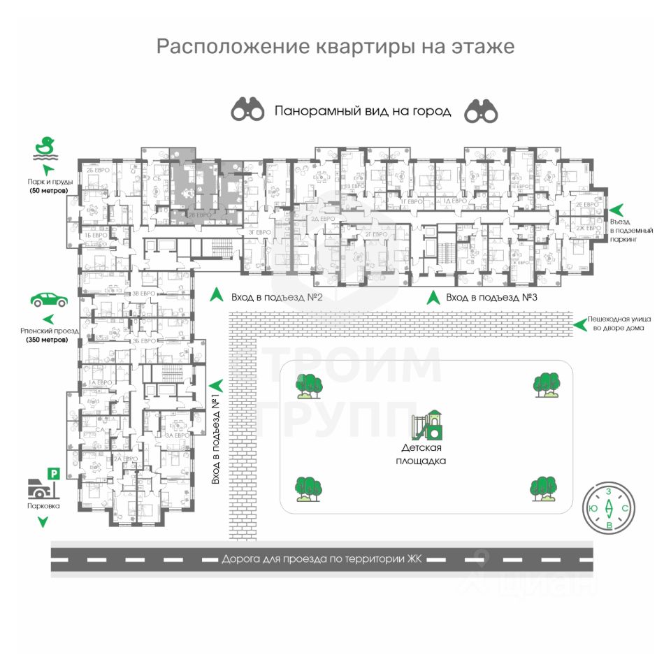 Соколиный парк - новый современный жилой комплекс от Строим Групп - одного из самых прогрессивных девелоперов Владимирской области. Комплекс строится в районе Доброе города Владимир, в непосредственной близости от новой транспортной артерии города - Рпенского проезда. К неоспоримым преимуществам Соколиного парка можно отнести: крышные газовые котельные в каждом доме, наличие подземного паркинга, огороженную территорию с видеодомофонами и видеонаблюдением по периметру, современную детскую площадку с резиновым покрытием и, главное, наличие своего собственного парка с прудами и местами отдыха!Планировочные решения квартир также сделаны с заботой об удобстве будущих жильцов: - эргономичные, но при этом достаточно просторные планировки - в них просто нет бесполезных пространств, за которые нужно переплачивать, - панорамное остекление во всех квартирах, благодаря которому будет больше солнечного света, - квартиры с большими кухнями-гостиными (европланировки) и классические форматы, - квартиры с распашными планировками и с планировками классического вида, - высокие потолки: 2,8 метра (без учёта стяжки)! Купить квартиру в ЖК Соколиный парк вы можете как за наличный расчёт, так и по льготным ипотечным программам (Семейная или IT-ипотека), а также воспользоваться рассрочкой напрямую от застройщика на срок до 24 месяцев. По стандартам компании Строим Групп все квартиры в ЖК Соколиный парк сдаются с предчистовой отделкой White box с гарантией на все выполняемые работы!