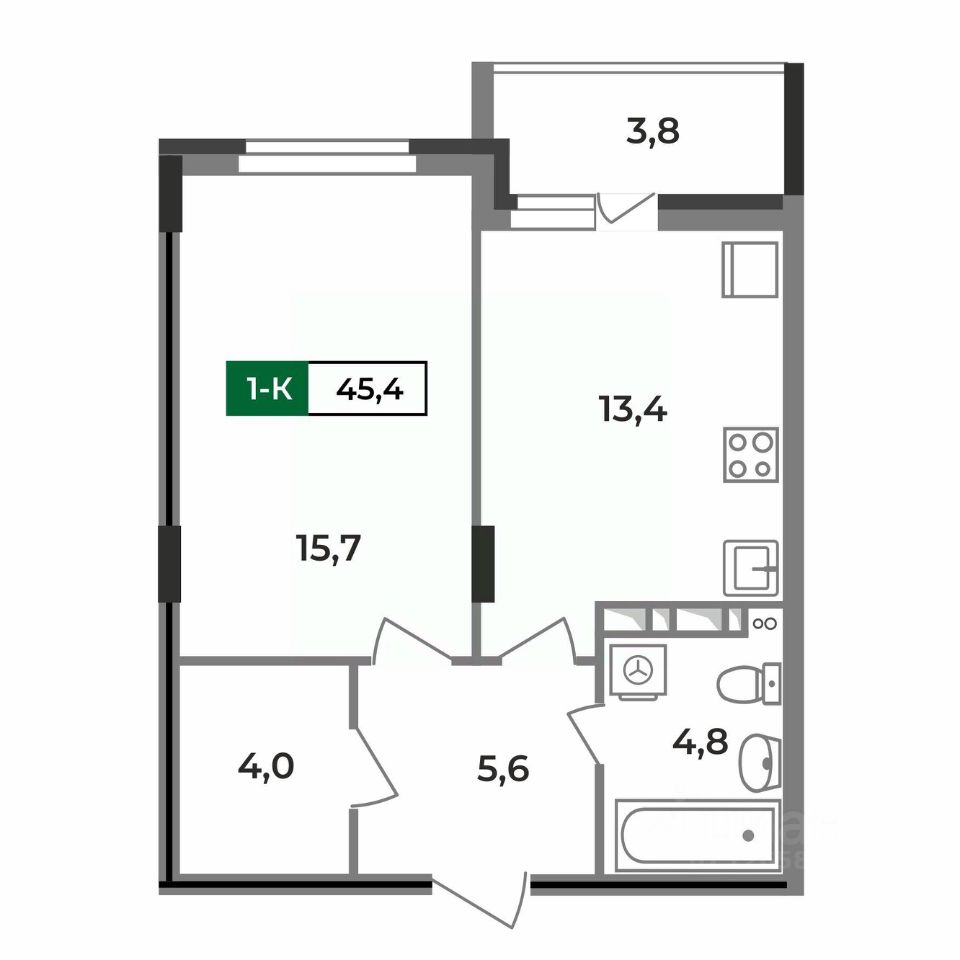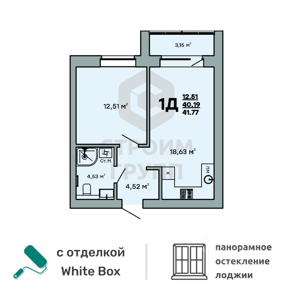 Ключевой особенностью этой однокомнатной квартиры является просторная комната площадью 12,5 квадратных метров. Это позволяет совместить зону сна с возможностью установки двухспальной кровати и оборудования ТВ-зоны с размещением там большого дивана. Отдельная кухня-гостиная площадью более 18,5 квадратных метров позволяет комфортно разместить всю необходимую для приготовления и приема пищи мебель и бытовую технику. Также там можно поставить небольшой диван в качестве дополнительного места для отдыха. Отдельно отметим, что из кухни есть выход на просторную лоджию площадью 3,15 квадратных метра. При сдаче дома лоджия будет остеклена! В изолированной прихожей площадью 4,5 квадратных метра предусмотрено место для установки шкафа для хранения верхней одежды и обуви. Просторная ванная комната площадью 4,5 квадратных метра позволяет свободно разместить унитаз, ванну, раковину и стиральную машину. Доступны такие способы покупки, как наличные, ипотека от ведущих банков (в т.ч. все программы с субсидиями и господдержка), ипотека со снижением ставки за счёт застройщика, рассрочка до 2 лет напрямую от застройщика В цену квартиры сразу входит ремонт в формате White Box с гарантией на все работы!