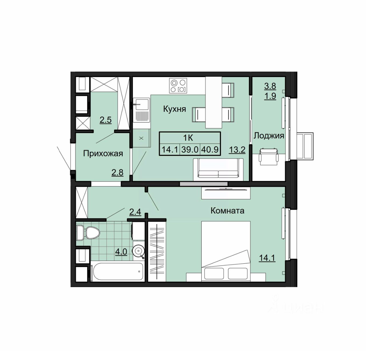 41 м² · Этаж 6 из 9