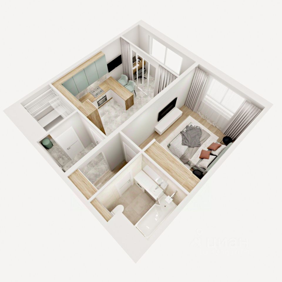 Перед вами однокомнатная квартира евро-планировки в ЖК Аурум. Заходим внутрь и попадаем в изолированную от жилых комнат прихожую. Там мы видим отдельную зону для установки шкафа для хранения верхней одежды. Из прихожей мы можем пройти в просторную ванную комнату, где предусмотрено место для размещения душевой кабины, стиральной машины, унитаза и раковины. Другая дверь из коридора ведет в большую кухню-гостиную площадью почти 18 квадратных метров. Пространство легко разделить на зону приготовления пищи с установкой там углового кухонного гарнитуры, столовую и ТВ-зону с большим, комфортным диваном и телевизором. Также из кухни-гостиной мы можем выйти на первую теплую лоджию площадью более 2 квадратных метров. Ее можно комфортно использовать не только в теплое, но и в холодное время года. Из общей комнаты проходим в отдельную спальную площадью 10 квадратных метров. Из нее также есть выход на вторую теплую лоджию площадью 2 квадратных метра. Также здесь предусмотрено место под двуспальную кровать и вместительный шкаф для хранения вещей. Доступны такие способы покупки, как наличные, ипотека от ведущих банков (в т.ч. все программы с субсидиями и господдержка). В цену квартиры сразу входит ремонт в формате White Box с гарантией на все работы!