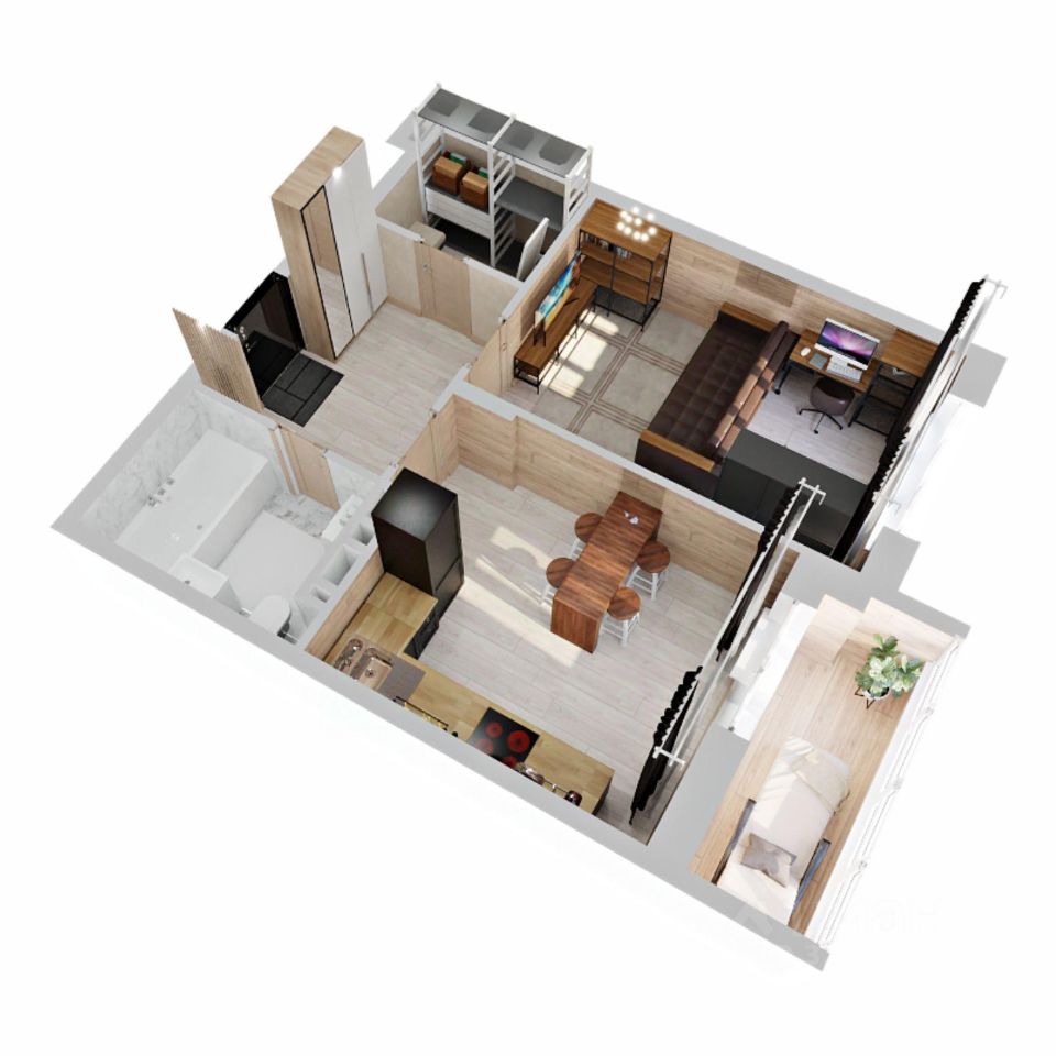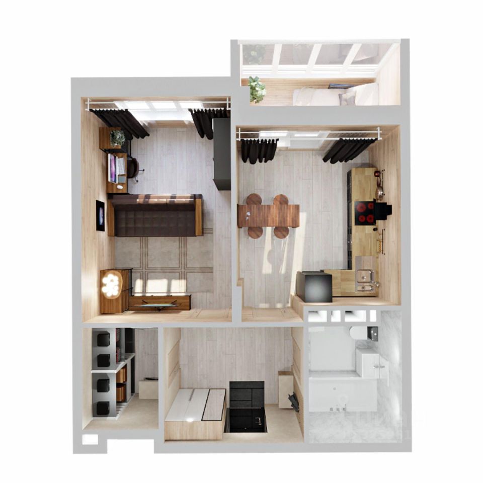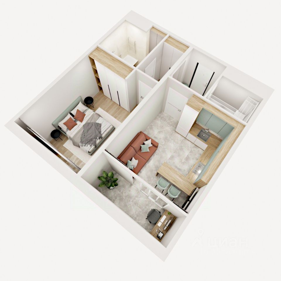 Перед вами однокомнатная квартира евро-планировки в ЖК Аурум.Заходим внутрь и попадаем в просторную, изолированную от жилых комнат прихожую, где предусмотрена большая зона для гардероба. Рядом расположена ванная комната с местом под стиральную машину, душевую кабину, унитаз и раковину. Из прихожей мы попадаем в большую кухню-гостиную площадью более 18 квадратных метров, в которой совмещены зоны для приготовления и приема пищи и семейного отдыха. В комнате свободно поместится удобный угловой кухонный гарнитур, просторный обеденный стол для и комфортный большой диван с телевизором. Далее из кухни-гостиной мы проходим в отдельную спальную комнату. Надо отметить, что проект предусматривает максимальное использование пространства для жизни, поэтому здесь нет коридоров. В спальне площадью 10 квадратных метров предусмотрена зона для хранения одежды, благодаря чему место для отдыха выглядит более эстетично. Также мы можем выйти из спальной комнаты на теплую лоджию - по сути она является частью комнаты и при сдаче дома будет оснащена радиатором отопления. Поэтому ее можно комфортно использовать не только в теплое, но и в холодное время года. Доступны такие способы покупки, как наличные, ипотека от ведущих банков (в т.ч. все программы с субсидиями и господдержка). В цену квартиры сразу входит ремонт в формате White Box с гарантией на все работы!