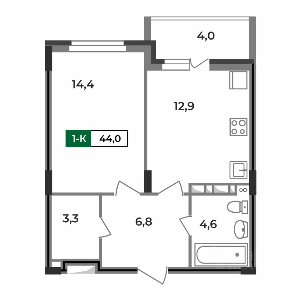 26 м² · Этаж 4 из 9
