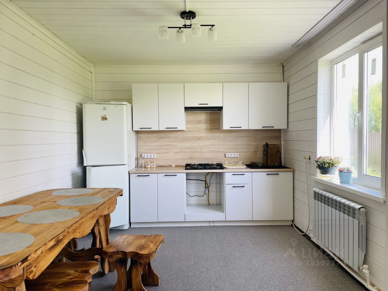Отопление от газового котла, вода(скважина более 50 метров), канализация(септик). Укомплектован всей необходимой мебелью и техникой.