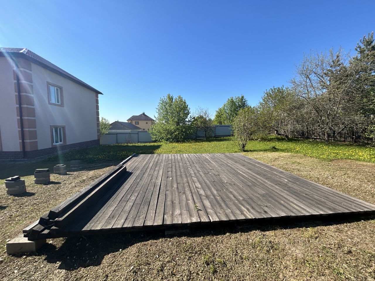 Земельный участок 9.4 сотки прямоугольной формы, ровный, сухой, отмежёван, границы установлены, огорожен со всем сторон комбинированным забором ( с фасадной и боковых сторон металлический забор из проф-листа и с задней стороны деревянный забор ). Для въезда на участок установлены распашные ворота, место под автомобиль выложено плиткой. На участке есть плодовые деревья: яблони, вишня, сливы, груши. Сделан помост под бассейн 6х6 с расширением 6х9. На фундаментных блоках, далее брус и половая доска 50мм. На него ставят бассейн 18 кв.м. Кадастровый номер земельного участка - 33:17:000101:128 Категория земель: Земли населенных пунктов. Вид разрешенного использования: Индивидуальное жилищное строительство. Рядом расположен участок 4 сотки, на нем 2 контейнера между которыми сделан сарай, также на нём расположена теплица. Его можно оформить в собственность.