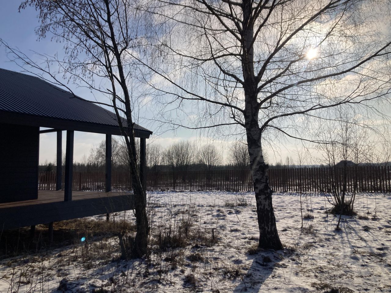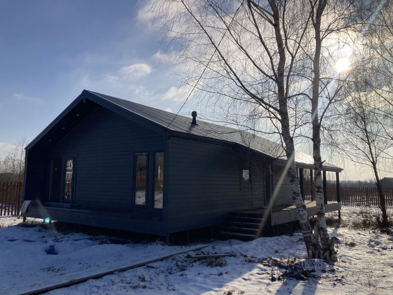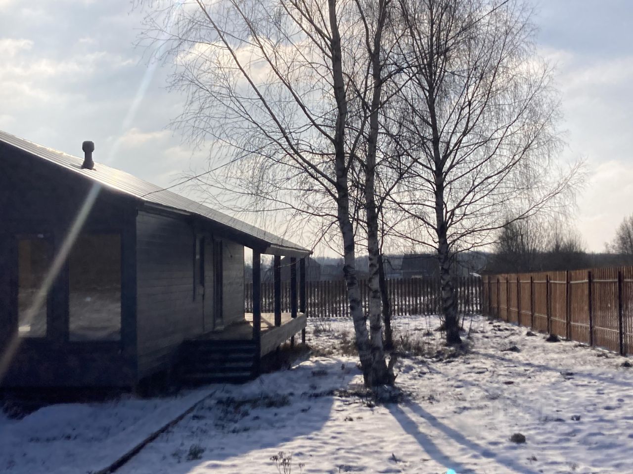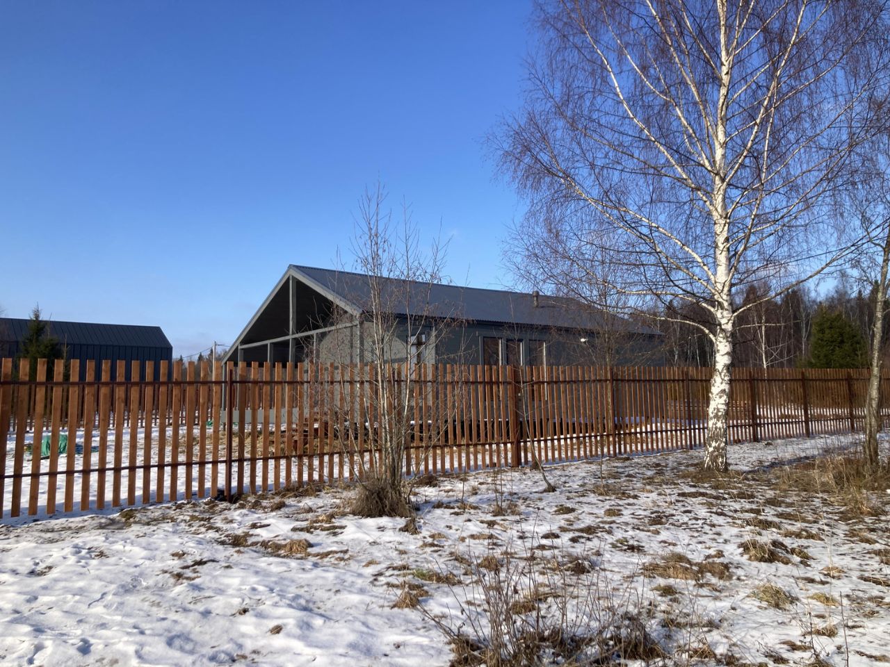 Участок 10 соток, широкий, ровный. огорожен забором из деревянного штакетника, установлены калитка и въездные ворота. Дом расположен на тихой улице, около леса.