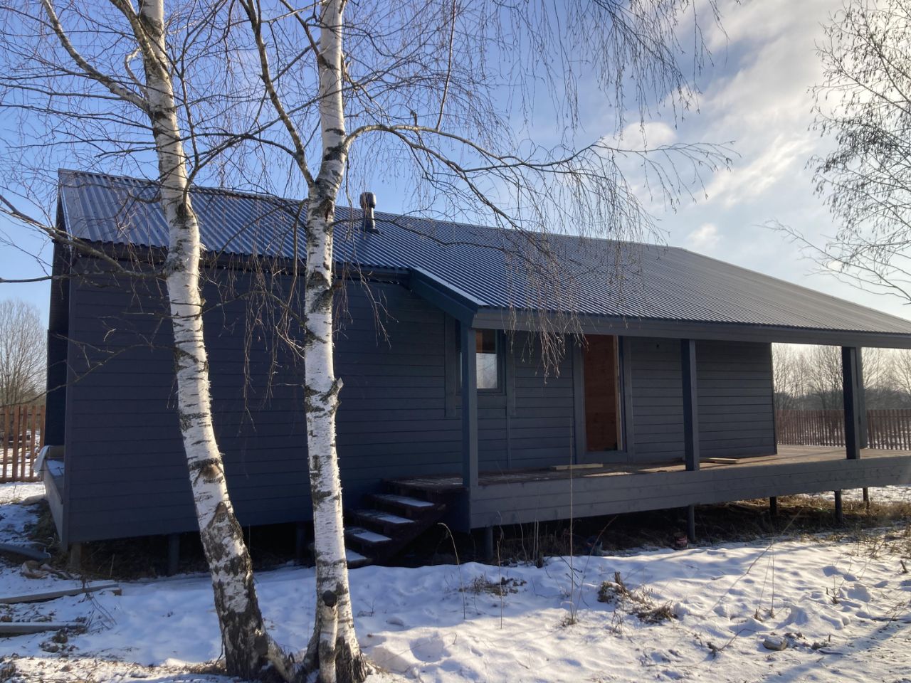 Дом построен по современной каркасной технологии. Фундамент - свайный, залит бетоном. Толщина утеплителя в стенах - 150мм. Утепление крыши - 200мм. Сделан теплый пол по всей площади дома, покрытие пола - керамогранит. Высота потолка в гостиной 3,9 метра.