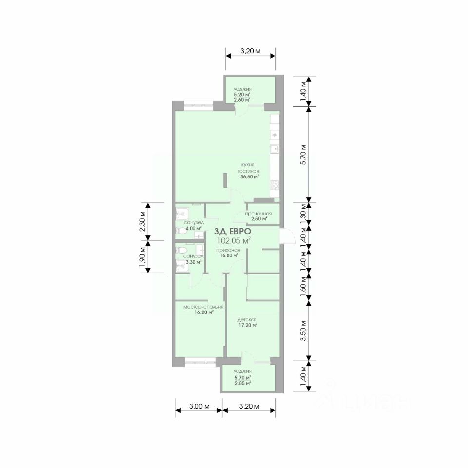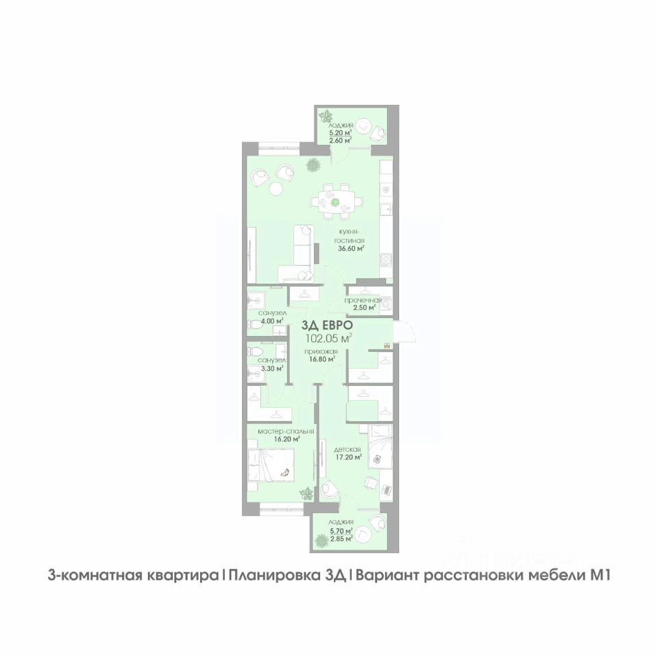 Общая площадь102,05 м2
