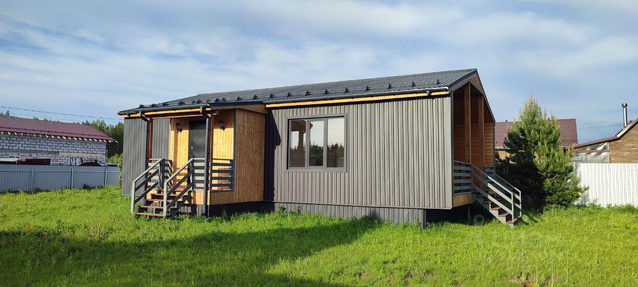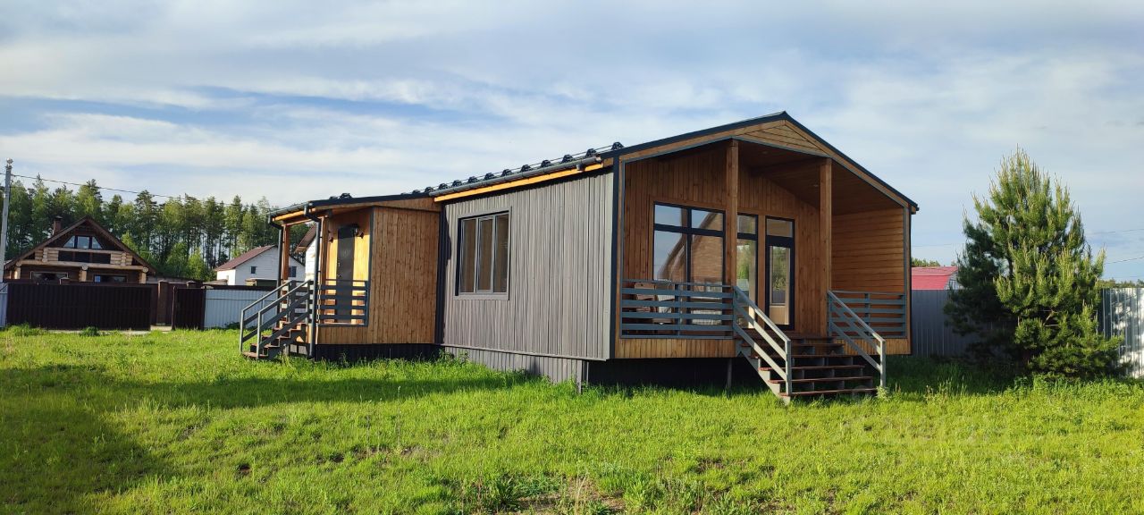 Предлагаем Вам новый теплый дом для круглогодичного проживания, построенный в современном стиле барнхаус. Дом расположен на участке 10 соток с разрешенным использованием для ИЖС с возможностью прописки. Участок расположен в деревне Дворищи Киржачского района в 3 км от города Киржач. Улица электрифицирована, есть оптоволоконный интернет, в 2025 году ожидается магистральный газ. Общая площадь дома 120 кв.м. Две спальные комнаты, прихожая, холл, гостиная-кухня, санузел, просторная веранда. Гостиная со вторым светом и помещением-спальней для маленьких непосед. Большие ламинированные панорамные окна с выходом на большую освещённую террасу. Дом обработан составами Tikkurila. Утепление в круг минеральной ватой 150 мм, сделана контррейка для вентиляции. На полу уложен ламинат, потолки натяжные Фундамент свайный, углубленный на 2 метра. Проводка в доме выполнена проводом NYM (2,5 мм на розетки, 1,5 мм на выключатели), 15 кв, 380 вт. Вода заведена в дом из скважины с греющим кабелем в трубе. Установлен септик. Будет установлена сантехника (туалет, раковина, душевая кабина и водонагреватель). Водосточная система и снегозадержатели по периметру дома. Весь участок огорожен железным забором, выполнены въездные ворота и калитка. Можно добраться с Москвы на ж/д транспорте, платформа рядом. Магазин в пешей доступности.