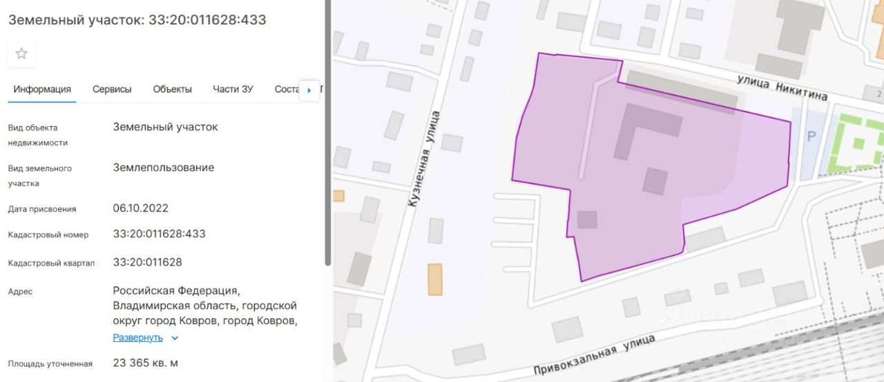 Кадастровые номера: 33:20:011628:14, 33:20:011628:113, 33:20:011628:114, 33:20:011628:115.