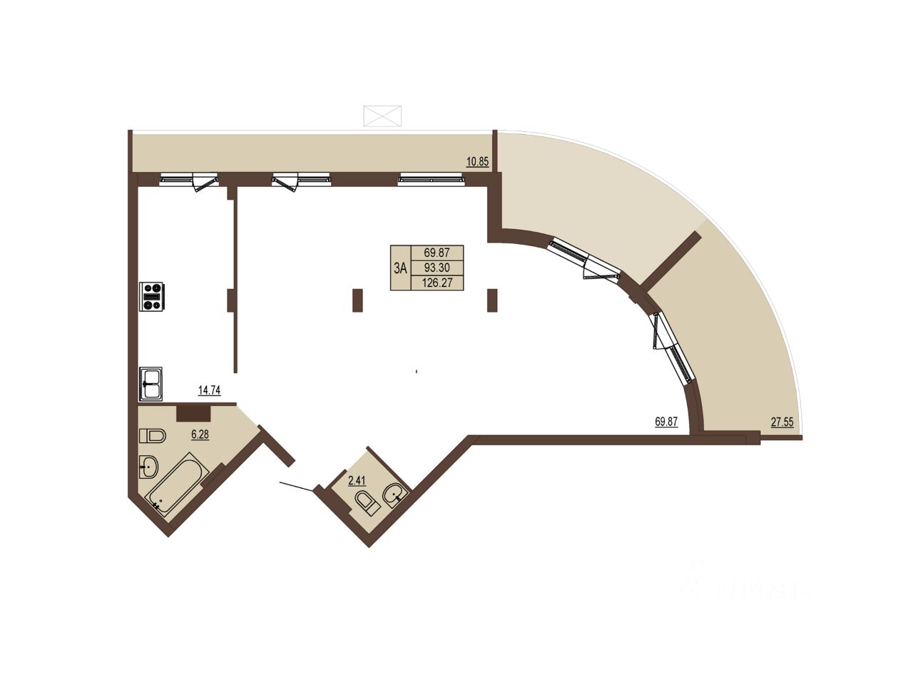 Общая площадь126,27 м2