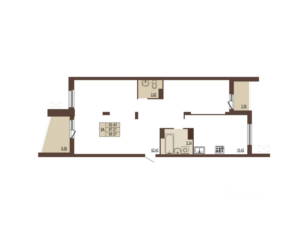 Общая площадь95,2 м2