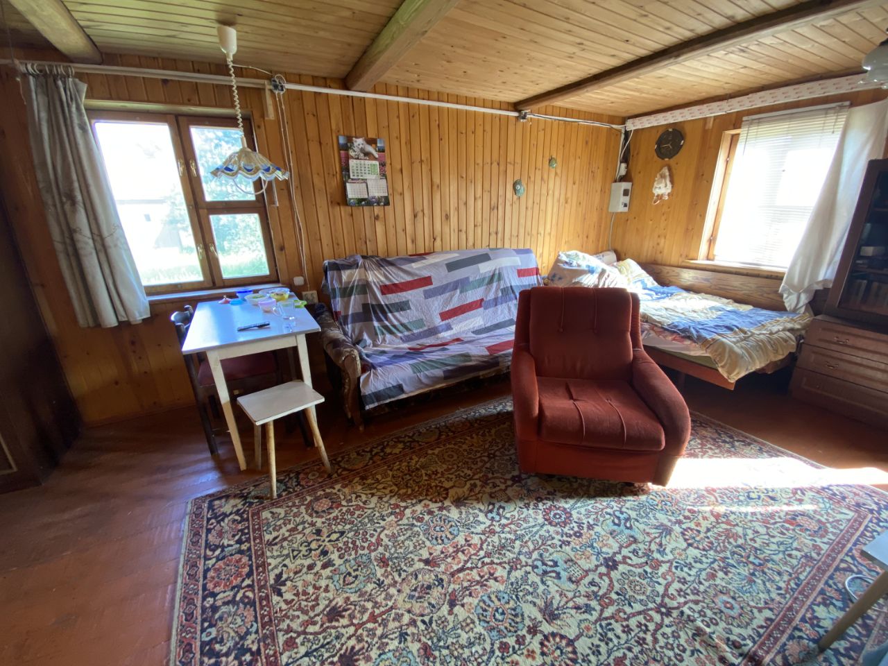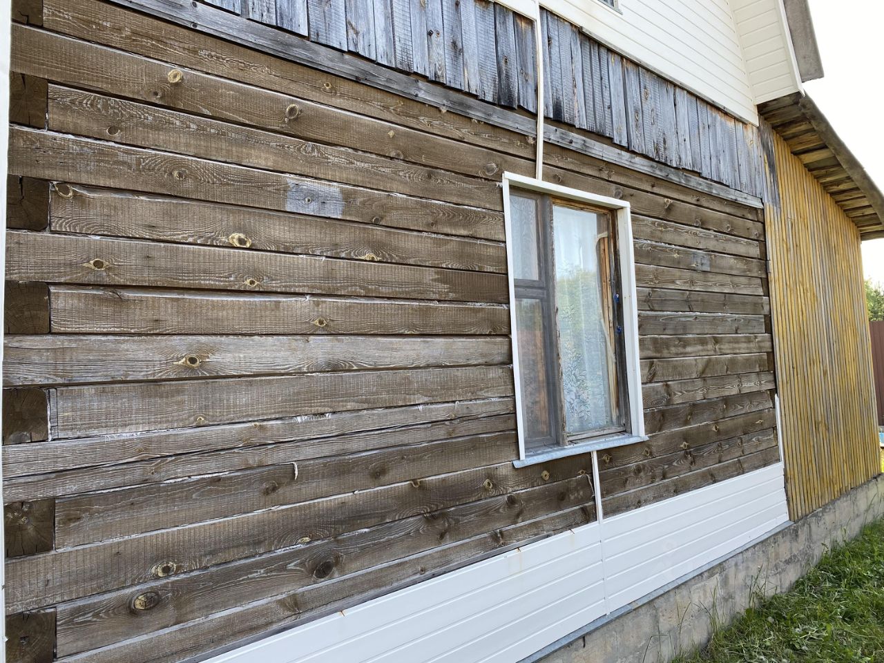 Дом выложен наполовину из бревен, наполовину из бруса 150х150, второй этаж каркасный. Снаружи дом обшит сайдингом для защиты от дождя и солнца, поэтому бревно и брус в отличном состоянии.