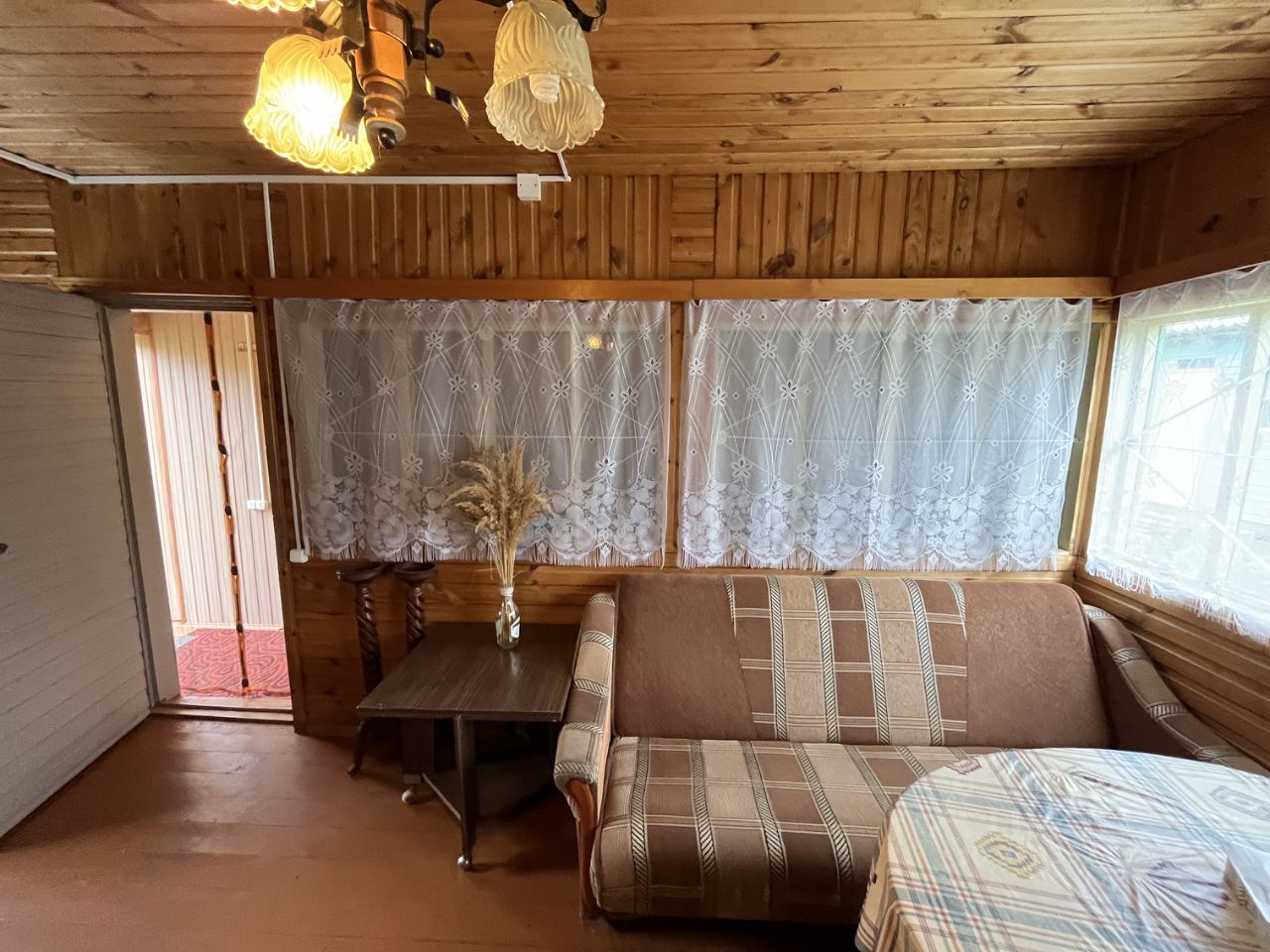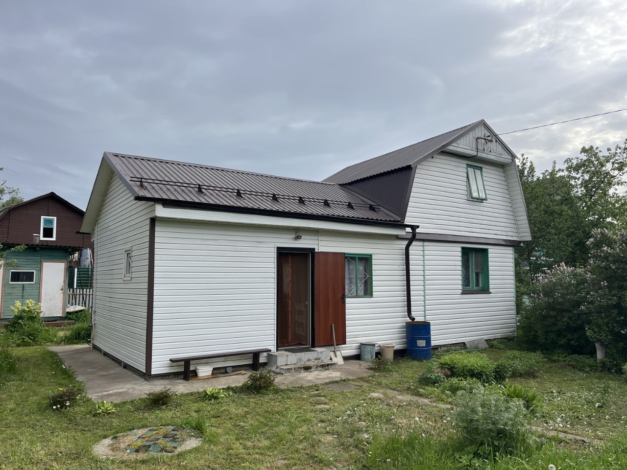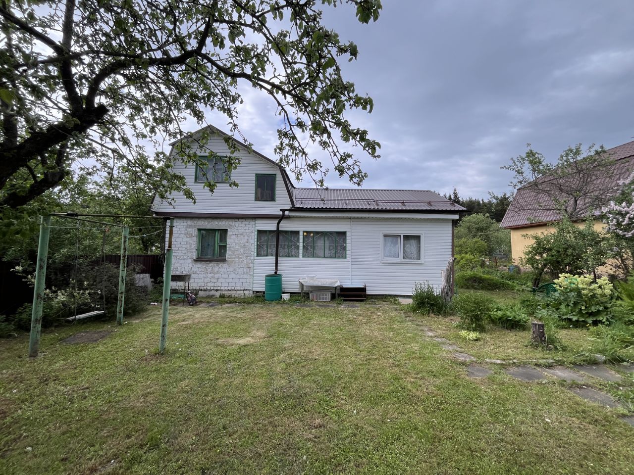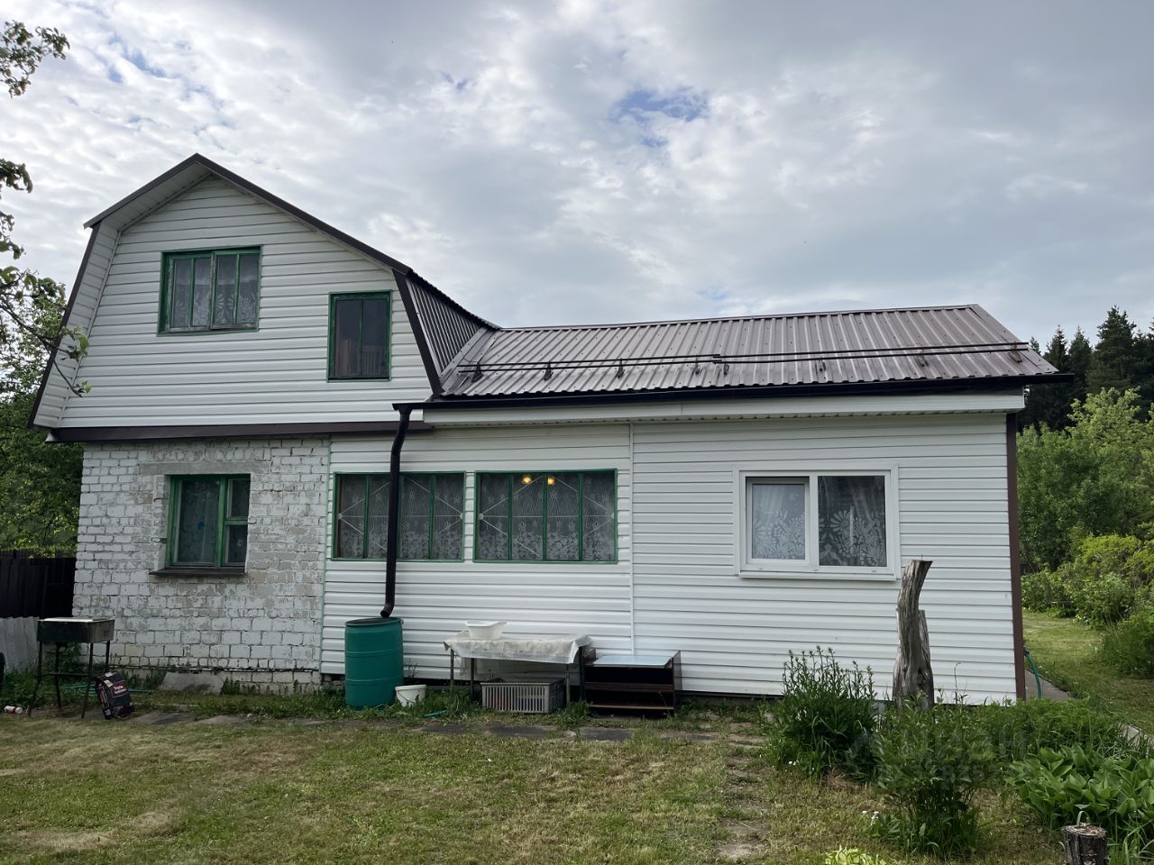 ДОМ-ДАЧА: Дом 2-х этажный, кирпичный, с утепленной каркасной пристройкой, на ленточном фундаменте. Общая площадь дома составляет 64,6 кв.м. На первом этаже: коридор, совместный сан/узел (установлена душевая кабина, туалет, раковина), комната и кухня-гостиная (в каркасной пристройке), небольшая кухня и комната, в которой установлена печь (в кирпичном строении). На втором этаже: коридор, техническое помещение и две проходные комнаты. Состояние дома отличное. Большая часть мебели при продаже остается. Крыша новая, установлены снегозадержатели. Дом снаружи обит сайдингом. Электрическую проводку в доме меняли везде в 2017 году. На втором этаже технического помещения установлена большая бочка, которая заполняется водой и под собственным давлением подается в сан/узел.