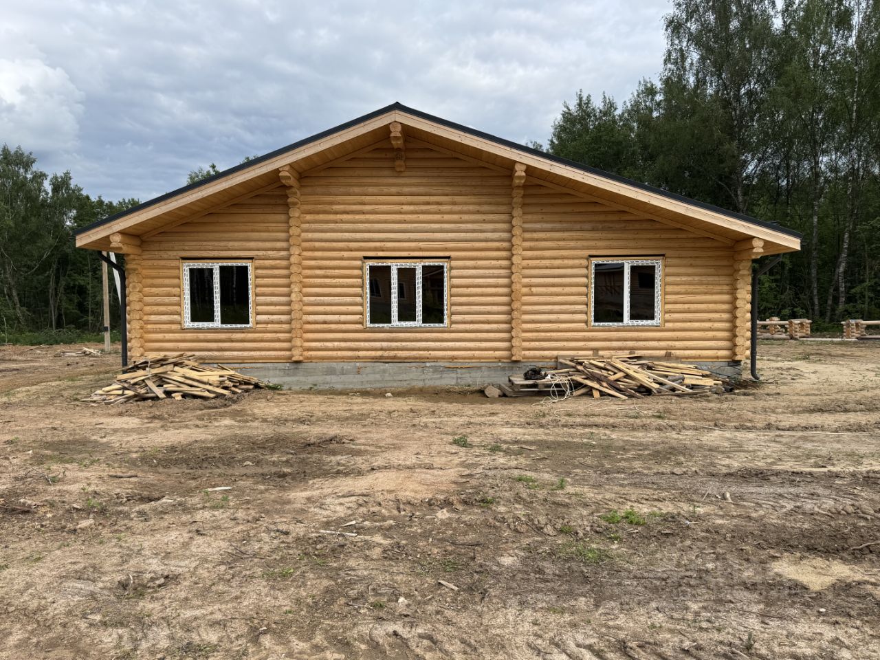 Продается новый одноэтажный дом с отделкой и коммуникациями в деревне Каменка, в 85 км от МКАД по Ярославскому ш., возможен проезд по Щелковскому ш. Дом находится, в 9 км от города Струнино. Дом теплый, построенный из оцелиндрованного бревна, общей площадью 180 кв.м. На окна установлены пластиковые стеклопакеты. Крыша утеплена и покрыта металлочерепицей. Санузлы оборудованы сантехникой. Полы оборудованы системой Теплый Пол от газового котла. В доме: просторная веранда, прихожая, три комнаты, два санузла, бойлерная, кухня и гостиная с потолками 4 метра. Участок 15 соток, ровный, прямоугольный, огорожен забором. Коммуникации: Электричество: подключено и разведено по потребительским точкам. Водоснабжение: скважина, подключена. Канализация: септик, подключен.