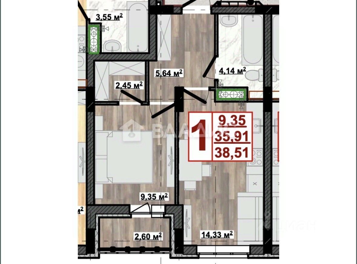 Код объекта: 1644478. Уникальное предложение в одном из самых перспективных районов Владимира — просторная 1-комнатная квартира в новостройке по адресу улица Жуковского 4.
