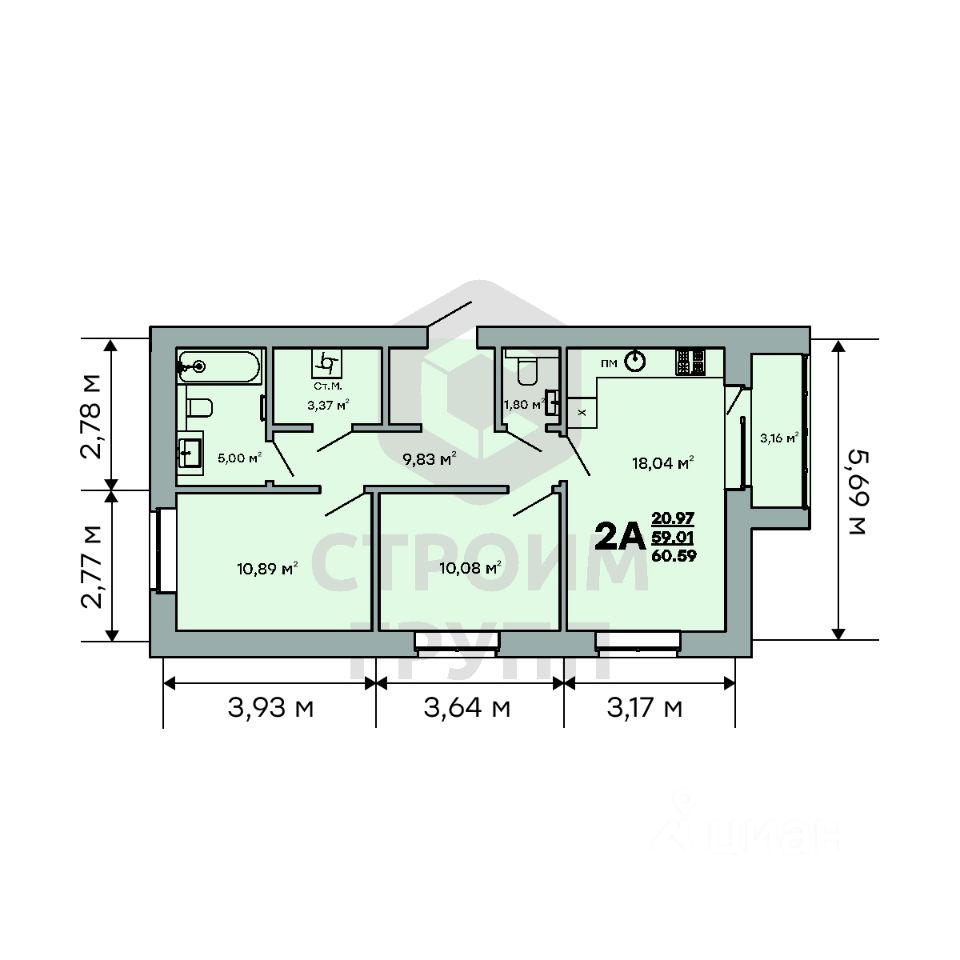 Общая площадь60,59 м2