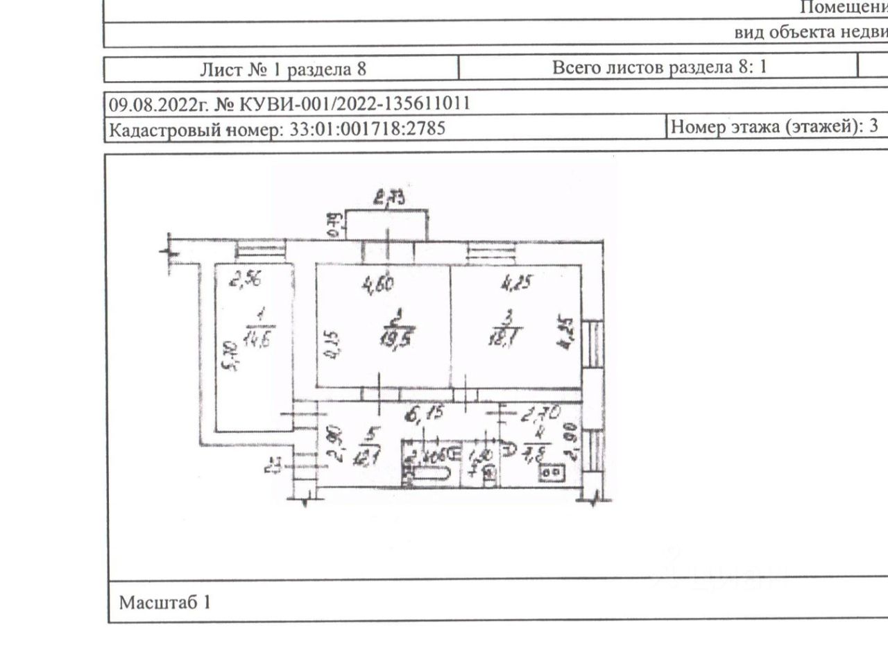 Общая площадь квартиры 72 м². Комнаты изолированные. Кухня 8 м². Санузел раздельный.