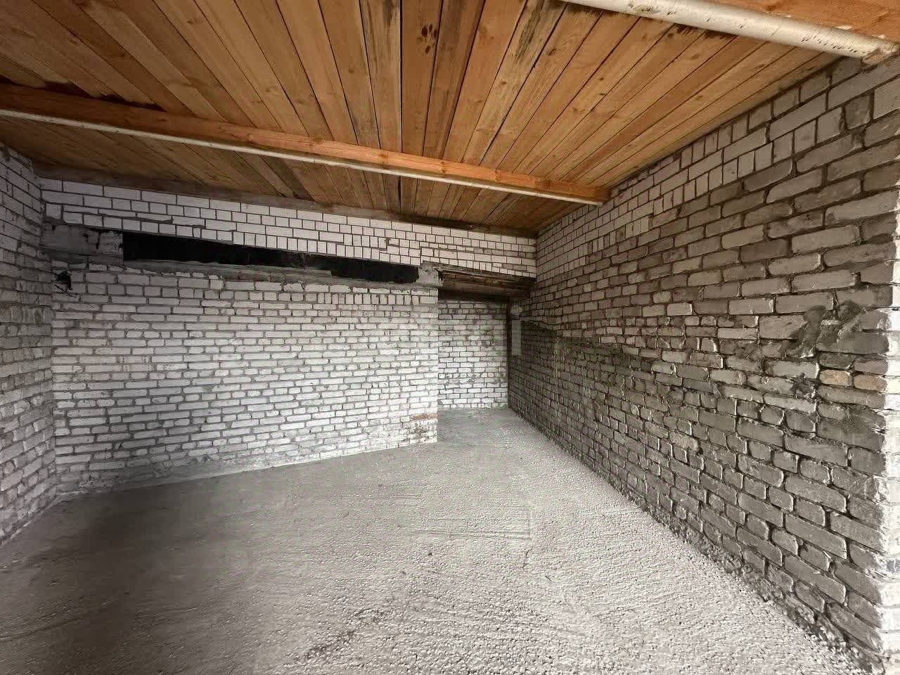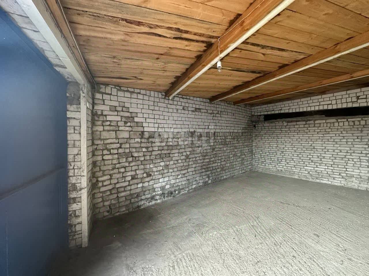 Пол гаража залит, стены кирпичные, дверь металлическая на двух замках.
