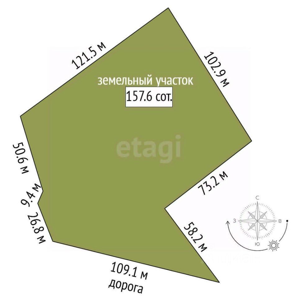 В продаже земельный участок 158 соток на окраине деревни Петроково в 13 км от города.
