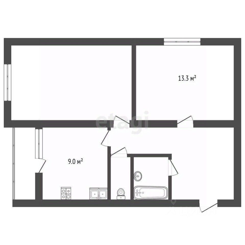 ** Основные параметры:** **Общая площадь:** 57,2 м² **Кухня:** 9 м² (просторная, правильной формы) **Планировка:** изолированные комнаты, большой коридор, раздельный санузел **Ремонт и оснащение:** пластиковые окна, металлическая дверь