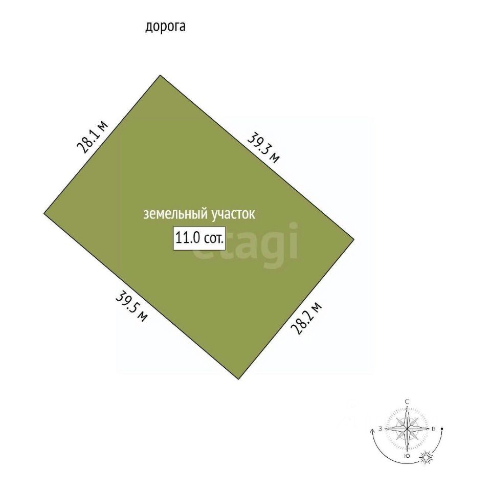 Земельный участок площадью 11 соток расположен в деревне Афанасово на новой улице, в 13 км от Мурома — дорога занимает не более 10 минут благодаря качественному асфальтовому покрытию. Участок имеет правильную, почти квадратную форму (28 39 м), что упрощает планировку и строительство. Поверхность ровная, без перепадов высот, что минимизирует затраты на подготовку территории.