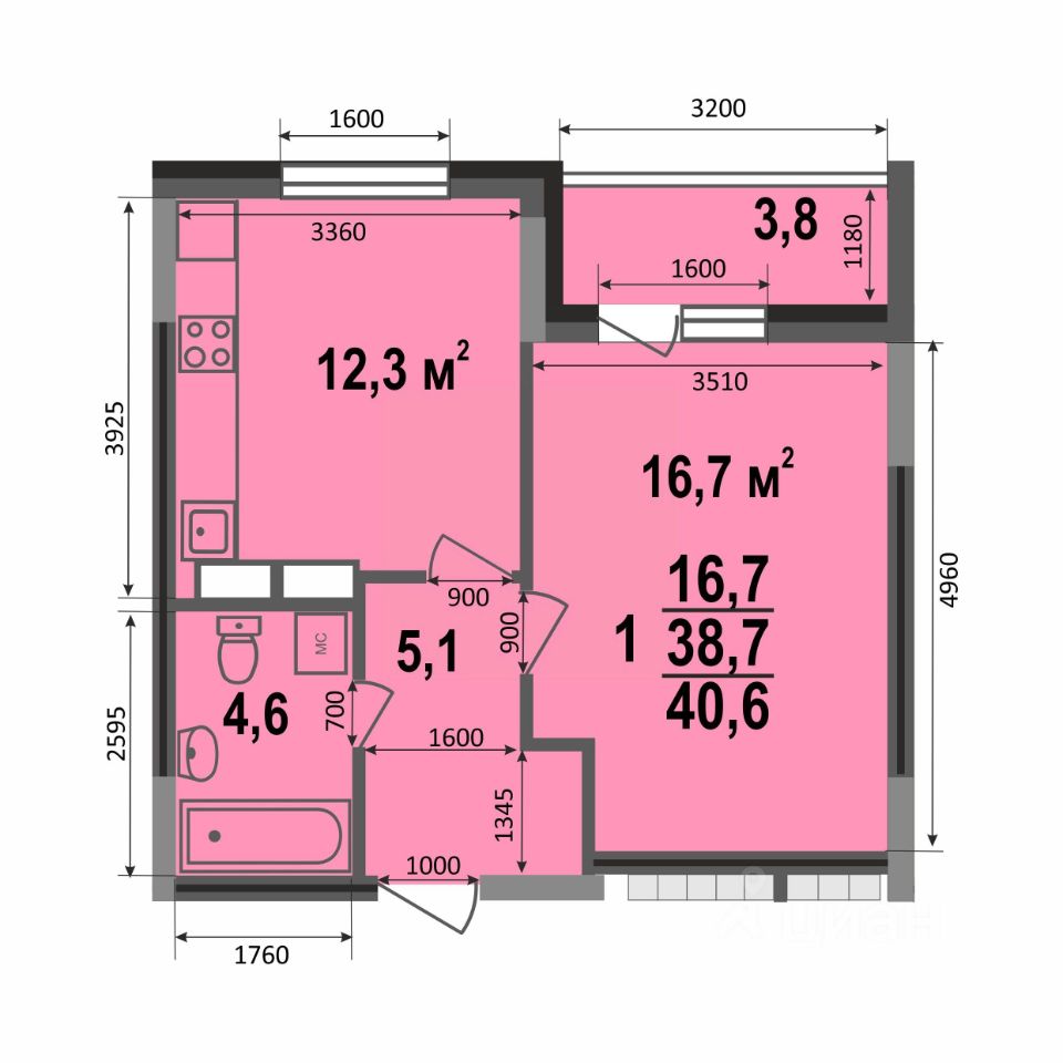Общая площадь40,6 м2