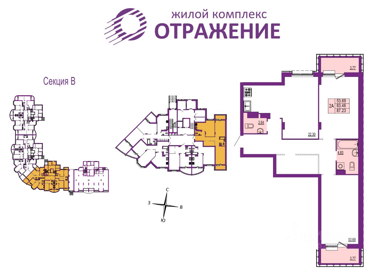 Квартира 65, секция В, Корпус 1( ЗУ-1) в новостройке напрямую от ЗАСТРОЙЩИКА. Ипотека, материнский капитал, субсидии возможны г. Владимир, ул. Мира, д. 5