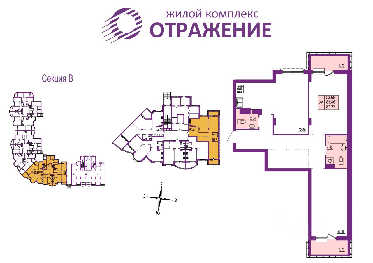 Отделка - Без отделки. - - Жилой комплекс ''Отражение'' - это четыре 17-этажных дома класса комфорт в центральном районе города: 5 минут до исторического центра и столько же для того, чтобы выбраться за город и к живописным местам у реки Содышка. Территория застройки комплекса находится между улицами Горького и Мира. Такое удачное расположение сочетает в себе, казалось бы, несовместимое: беспрепятственный доступ к главным дорожным развязкам города, и при этом комфорт и тишину вдали от шумных трасс.