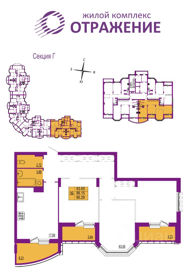 Отделка - Без отделки. - - Жилой комплекс ''Отражение'' - это четыре 17-этажных дома класса комфорт в центральном районе города: 5 минут до исторического центра и столько же для того, чтобы выбраться за город и к живописным местам у реки Содышка. Территория застройки комплекса находится между улицами Горького и Мира. Такое удачное расположение сочетает в себе, казалось бы, несовместимое: беспрепятственный доступ к главным дорожным развязкам города, и при этом комфорт и тишину вдали от шумных трасс.