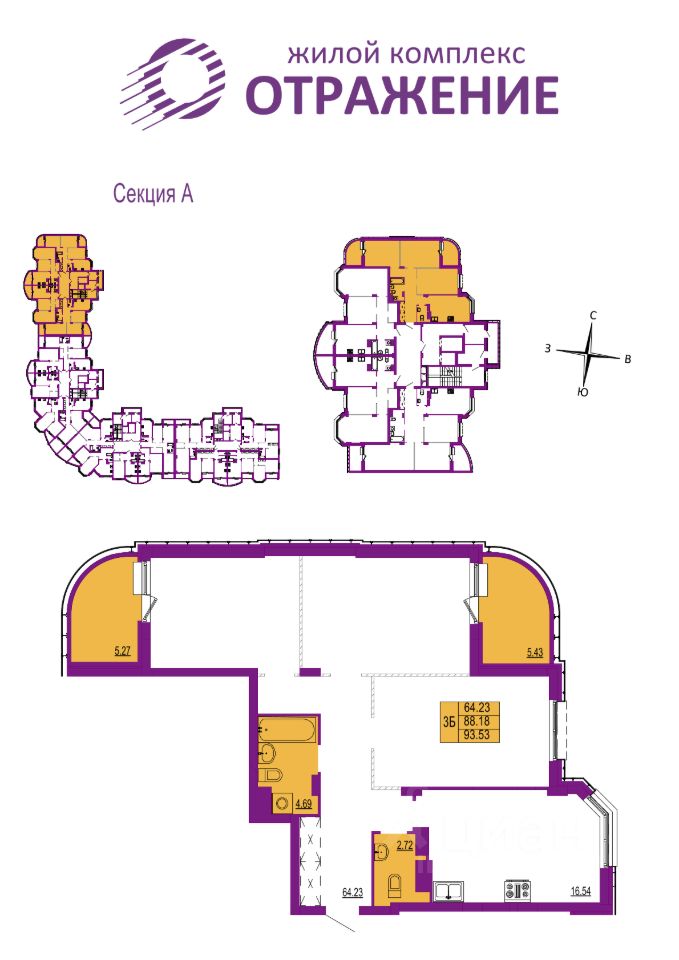 Отделка - Без отделки. - - Жилой комплекс ''Отражение'' - это четыре 17-этажных дома класса комфорт в центральном районе города: 5 минут до исторического центра и столько же для того, чтобы выбраться за город и к живописным местам у реки Содышка. Территория застройки комплекса находится между улицами Горького и Мира. Такое удачное расположение сочетает в себе, казалось бы, несовместимое: беспрепятственный доступ к главным дорожным развязкам города, и при этом комфорт и тишину вдали от шумных трасс.