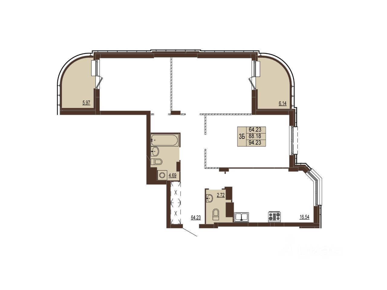 Квартира 270, секция А, Корпус 1( ЗУ-1) в новостройке напрямую от ЗАСТРОЙЩИКА. Ипотека, материнский капитал, субсидии возможны г. Владимир, ул. Мира, д. 5