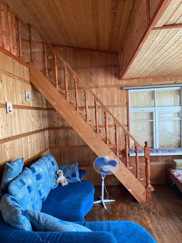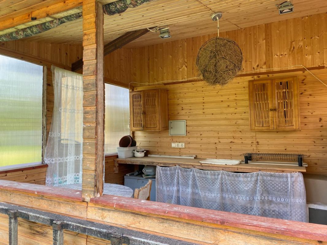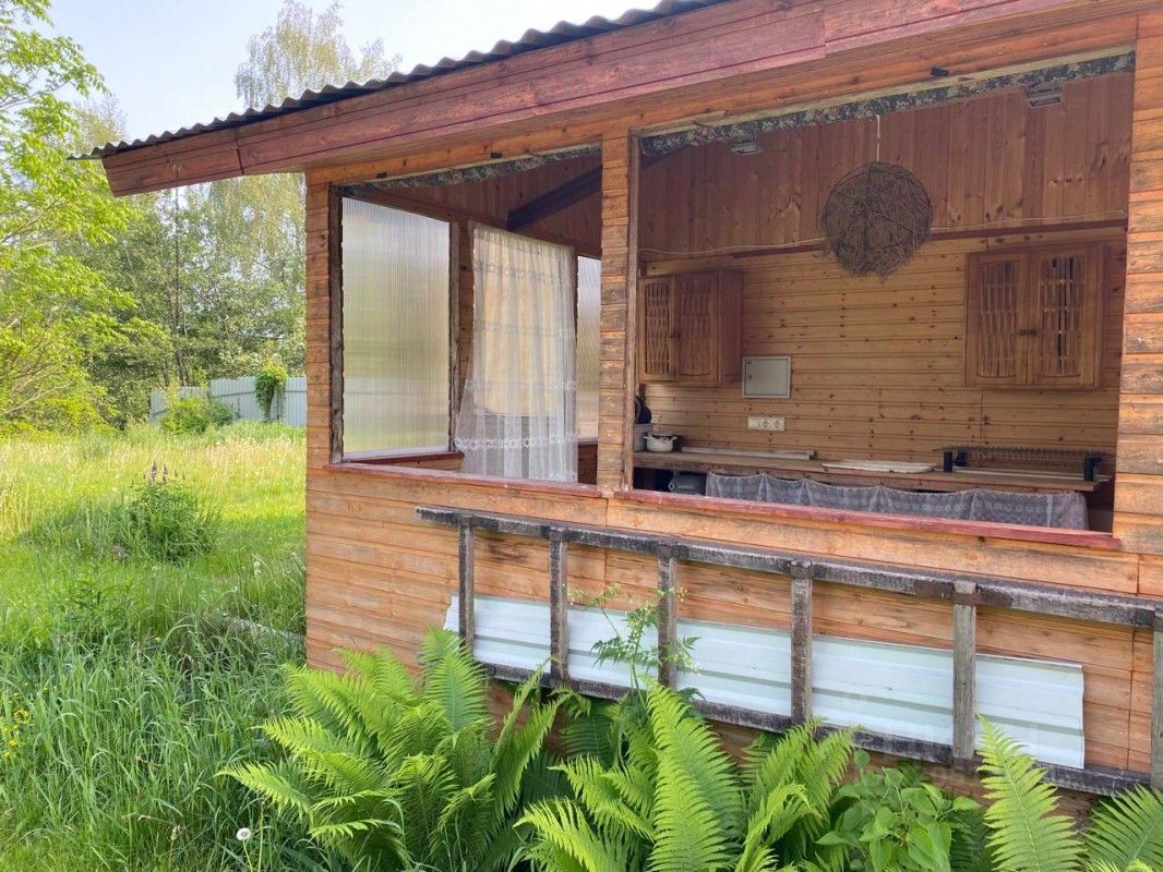 Дача, около 40 кв.м., одноэтажная, к ней пристроена летняя веранда. В доме электричество, заведена вода из собственной скважины и слив (выгребная яма), санузел (биотуалет), установлен кондиционер. Есть Wi-Fi. Почти всё в доме остаётся новым хозяевам.
