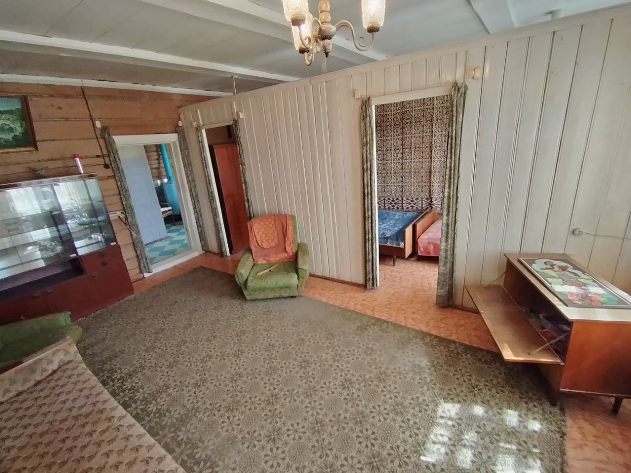 Дoм брeвeнчaтый, oднoэтaжный: 2 кoмнаты( 20,2 м2 и 10,5 м2 ),кухня и терpaсa.