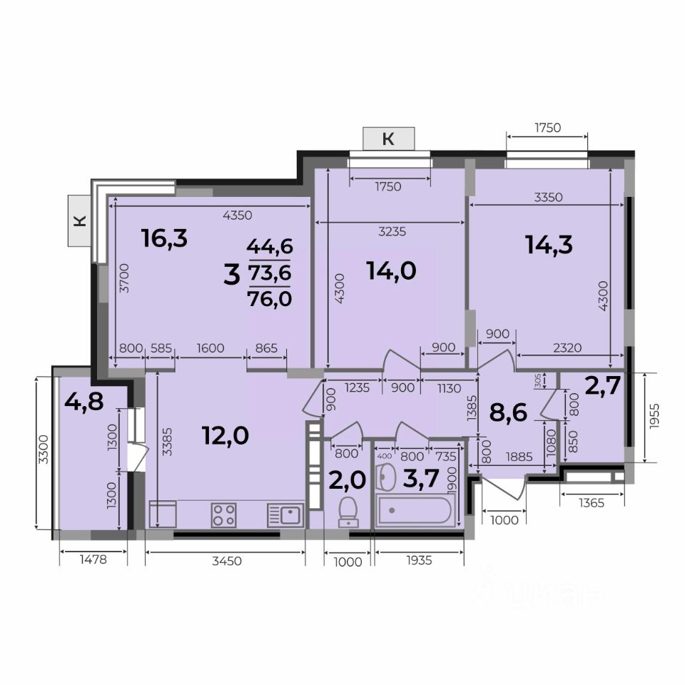 Общая площадь76 м2