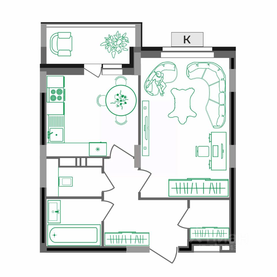 — кухня с выходом на лоджию 4 кв.м