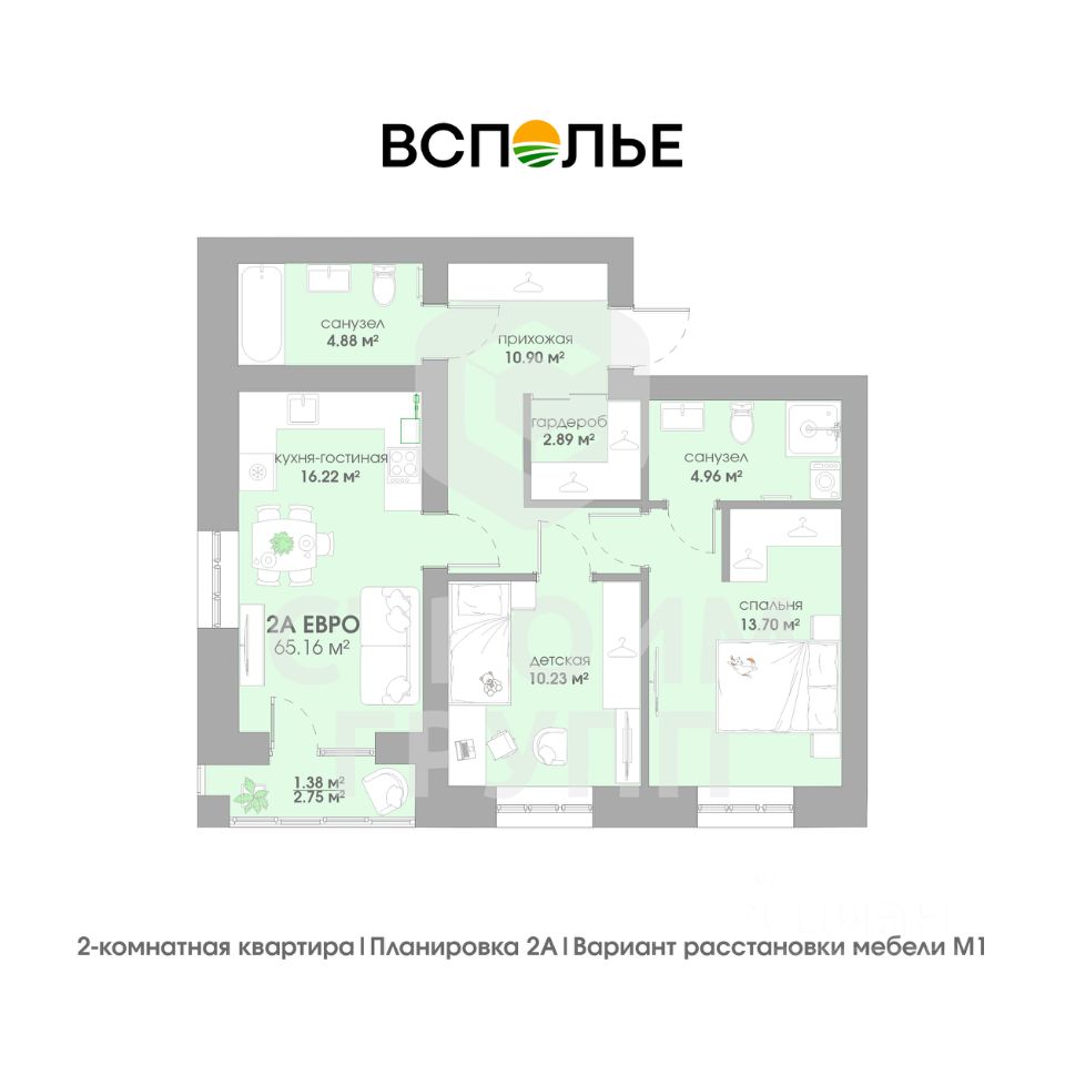 Общая площадь65,16 м2