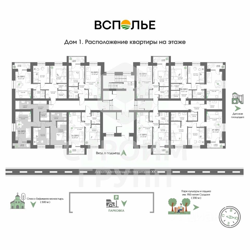 Новый проект от Строим Групп - жилой комплекс Всполье в самом известном туристическом городе России! ЖК Всполье в Суздале это три полностью кирпичных дома, расположенных рядом с одноименной улицей. Отличительной особенностью этого жилого комплекса является присущее компании Строим Групп внимание к деталям. Так, территория комплекса будет огорожена для спокойствия и безопасности жильцов, а на территории помимо самих домов будет размещена просторная парковка и детская площадка с резиновым покрытием. На территории, как и в подъездах, проектом предусмотрено круглосуточное видеонаблюдение. Но самое главное - все квартиры в ЖК Всполье будут сданы с отделкой от застройщика, стоимость которой уже входит в цену квартиры!