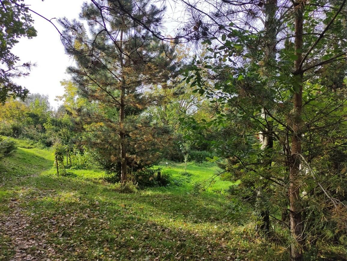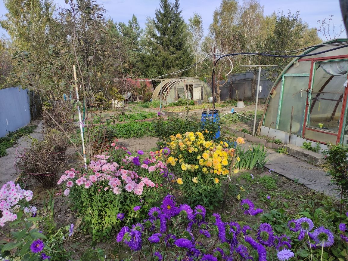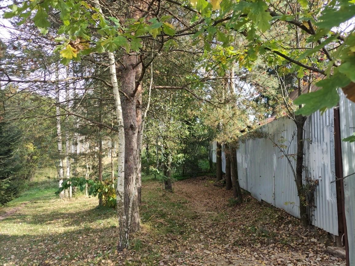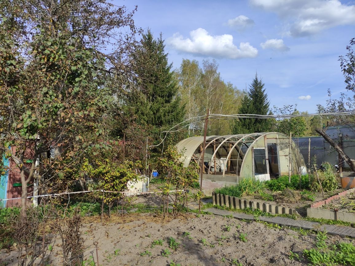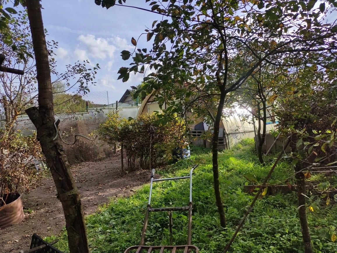 Участок ухожен. По фасаду огорожен металлопрфилем. Насаждения - смородина, малина, крыжовник, яблони, груши. Цветы. Есть две теплицы. На участке баня, гараж, парковочные места. Имеется выход с участка в лес.