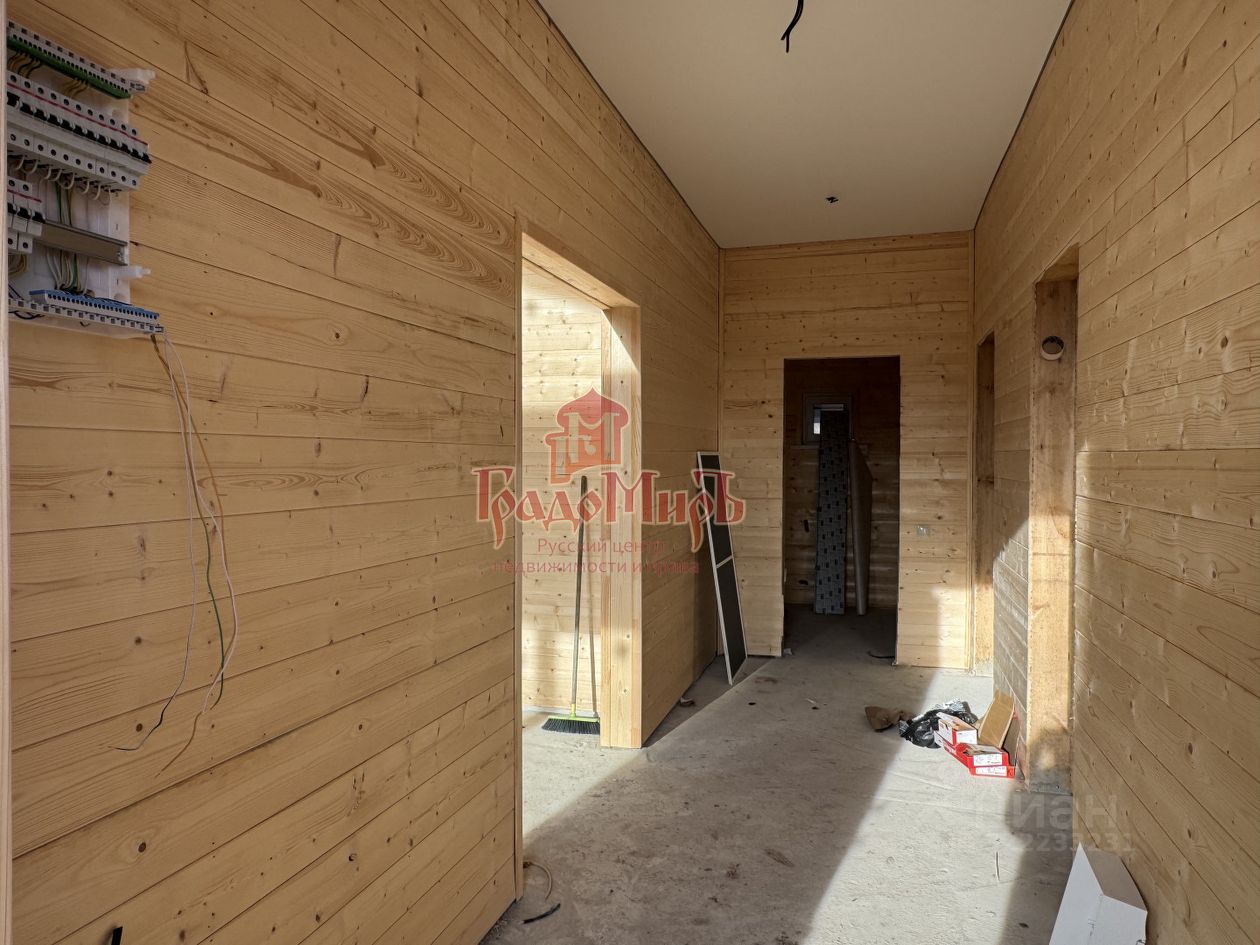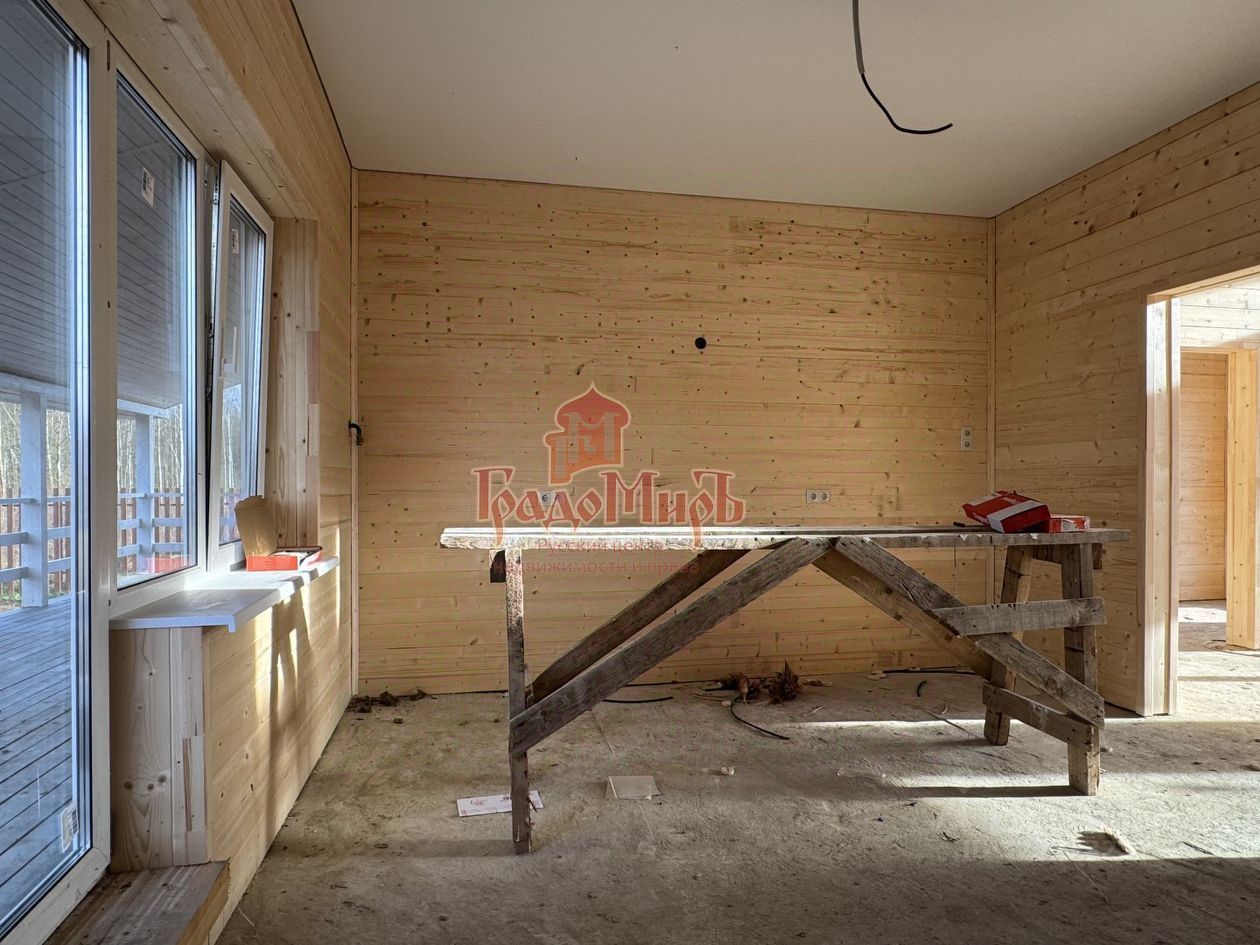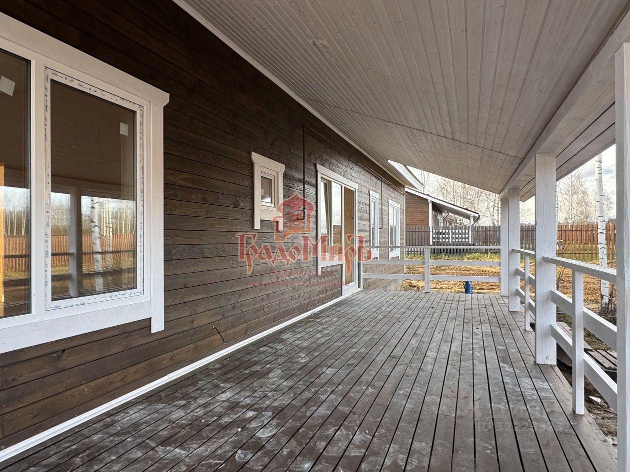 ДОМ 160 м2 Возведен в 2025 году на монолитном ленточном армированном фундаменте с перекрытием 1 этажа монолитной ж/б плитой. По 1 этажу разведен теплый пол на водяном контуре от газового котла. Что еще не сделано, но включено в стоимость: оборудованная котельная с функционирующими системами, напольное покрытие - керамогранит, ламинат, минимальный набор сантехники (материалы и работа). В доме установлены двухкамерные стеклопакеты (3 стекла). Подготовлены точки подключения электричества, водоснабжения и канализации, две точки подключения магистрального газа (в котельной и на кухне). Планировка: Вместительная прихожая, светлая, просторная гостиная, кухня через арку из гостиной. Из кухни выход на большую террасу. Также из кухни расположен вход в котельную, где можно организовать хранение. 4 спальни, 2 совмещенных с/у. Приятная особенность проекта: Гостиная и кухня находятся в центральной части дома, а спальни - по бокам от них. От входа в дом находится 2 спальни и с/у общего пользования. В дальней части от входа - еще 2 спальни, одна из которых - мастер-спальня со своим с/у.