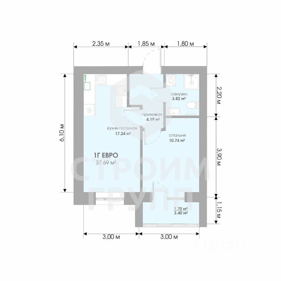 Общая площадь37,69 м2
