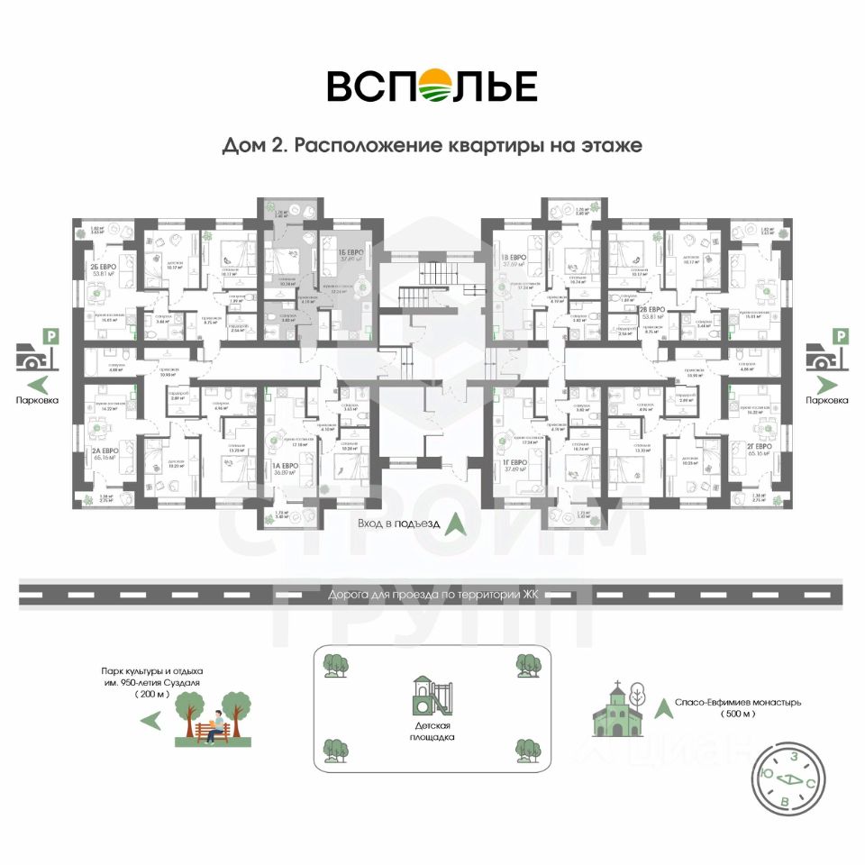 Новый проект от Строим Групп - жилой комплекс Всполье в самом известном туристическом городе России! ЖК Всполье в Суздале это три полностью кирпичных дома, расположенных рядом с одноименной улицей. Отличительной особенностью этого жилого комплекса является присущее компании Строим Групп внимание к деталям. Так, территория комплекса будет огорожена для спокойствия и безопасности жильцов, а на территории помимо самих домов будет размещена просторная парковка и детская площадка с резиновым покрытием. На территории, как и в подъездах, проектом предусмотрено круглосуточное видеонаблюдение. Но самое главное - все квартиры в ЖК Всполье будут сданы с отделкой от застройщика, стоимость которой уже входит в цену квартиры!