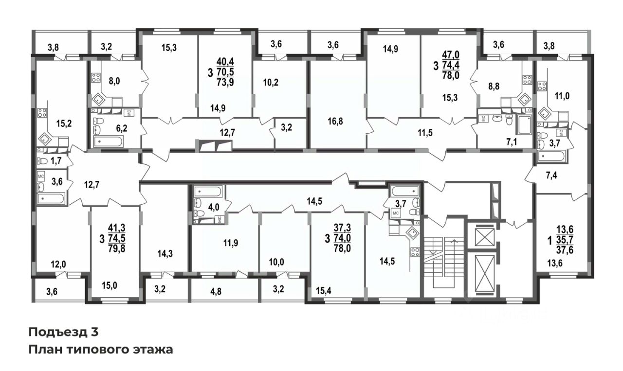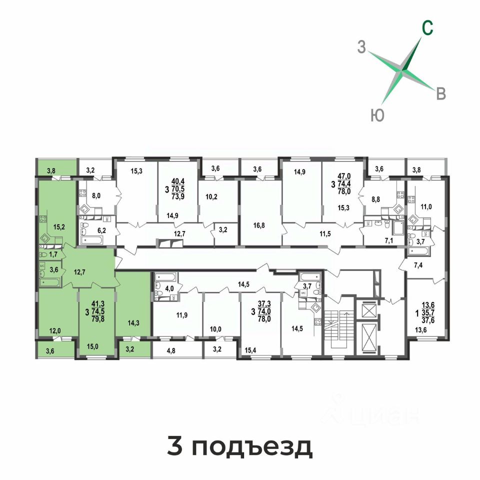 Просторная трешка 79,8 кв.м в строящемся доме ЖК Сталинградский бульвар 7 в новом смарт-квартале VERIZINO life. Классическая планировка-распашонка с тремя обособленными комнатами, просторной кухней 15 кв.м и тремя лоджиями.
