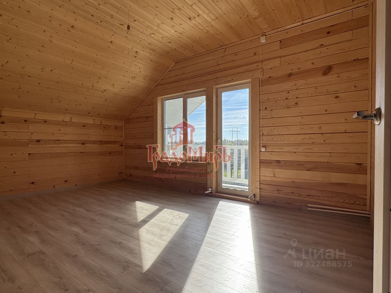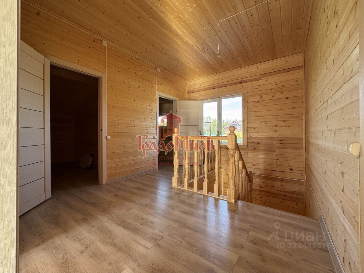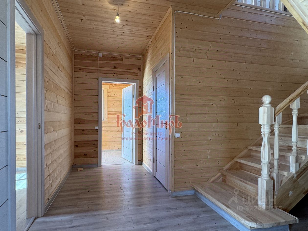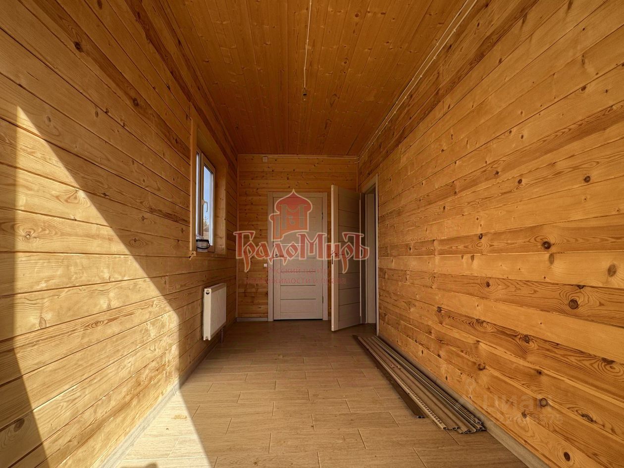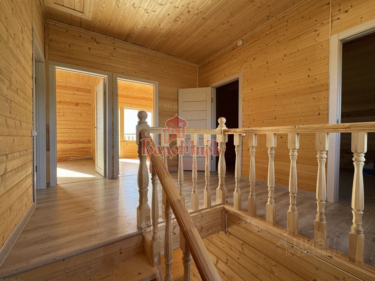 ДОМ 190 м2 с террасой Возведён из профилированного бруса камерной сушки (толщина стены 200мм) на монолитном фундаменте с перекрытием 1 этажа утепленной ж/б плитой. Фундамент был залит еще в 2024 году. В 2025 году был построен сруб под усадку. В этом году завершается внутренняя отделка. Теплый пол на водяном контуре от газового котла. Крыша - металлочерепица с утеплением, отливы и снегозадержатели в проходных зонах. Окна - двухкамерные стеклопакеты (3 стекла). Покрытие пола 1 и 2 этажа - плитка и ламинат. Установлена входная металлическая дверь с терморазрывом, межкомнатные двери высокого качества. Санузлы будут укомплектованы сантехникой. Планировка 1 этажа: Большая прихожая-тамбур с окном, котельная, светлая кухня - гостиная с панорамным окном и выходом на террасу, спальня, совмещенный с/у с установленной сантехникой. В зоне кухни подведены все коммуникации и газ для газовой плиты. Планировка 2 этажа: Три больших спальни, гардероб и совмещенный с/у, оборудованный сантехникой. Из двух спален есть выход на балкон с панорамным видом на поле и лес.
