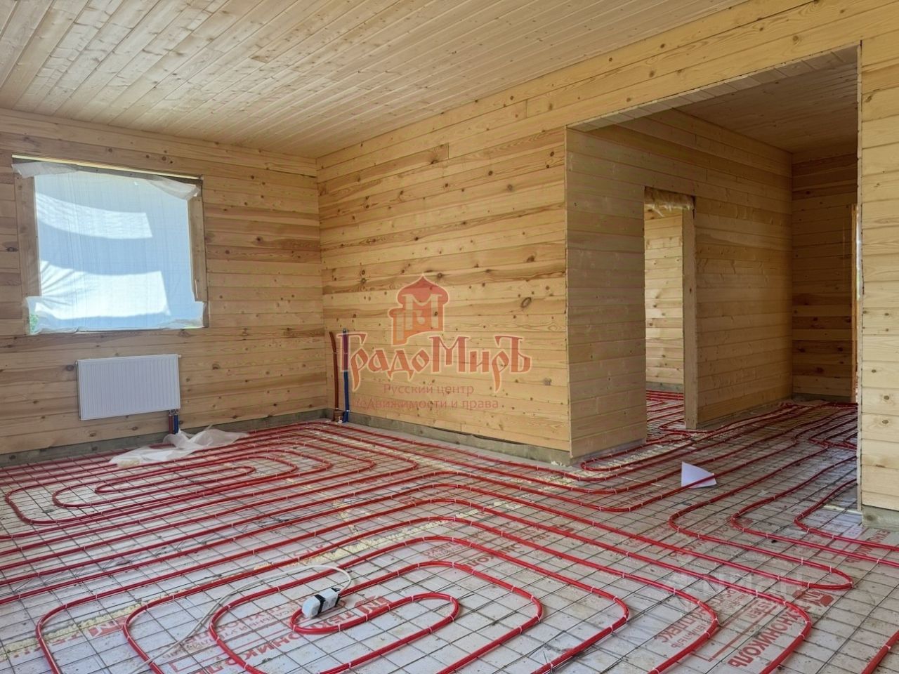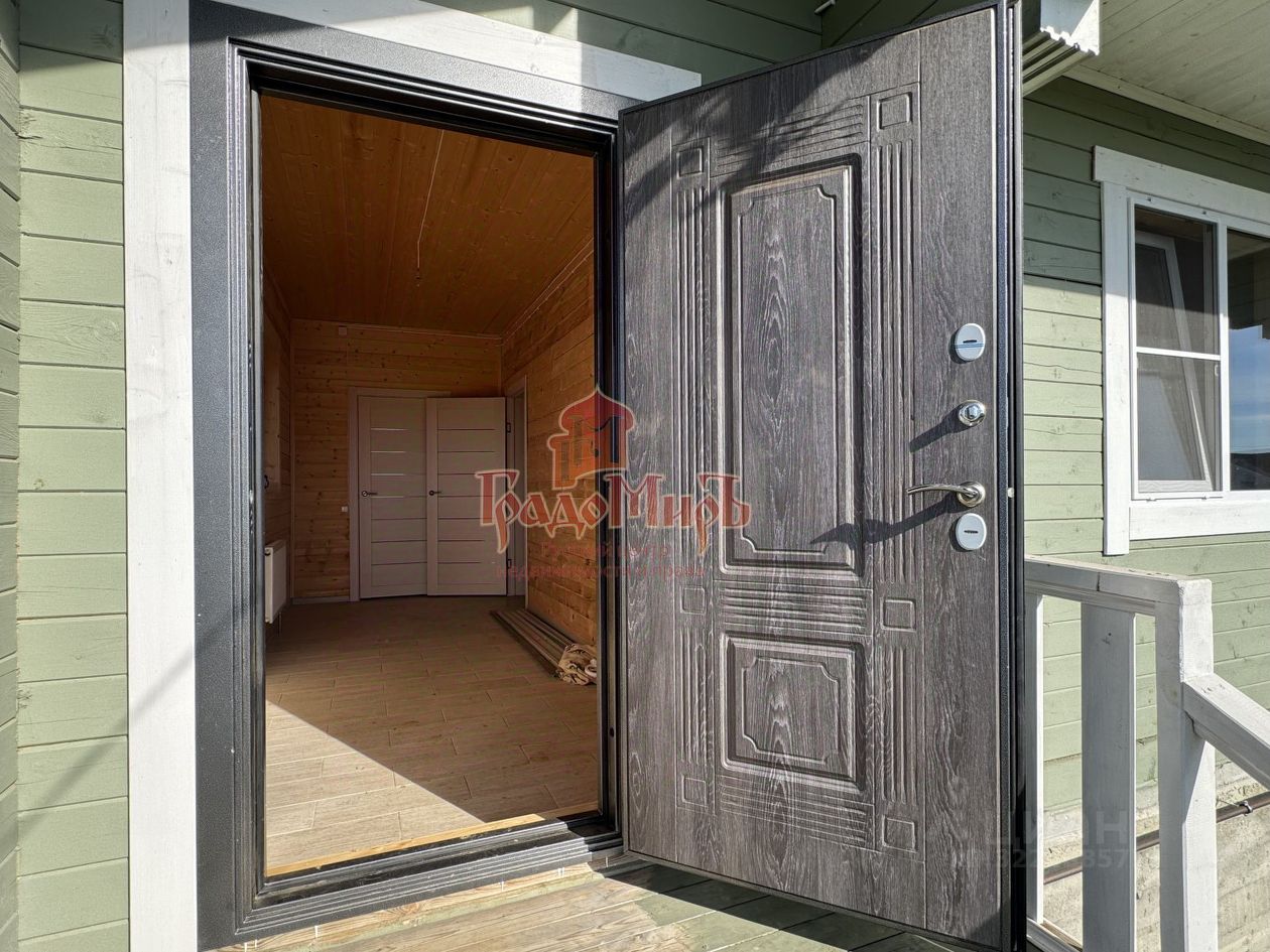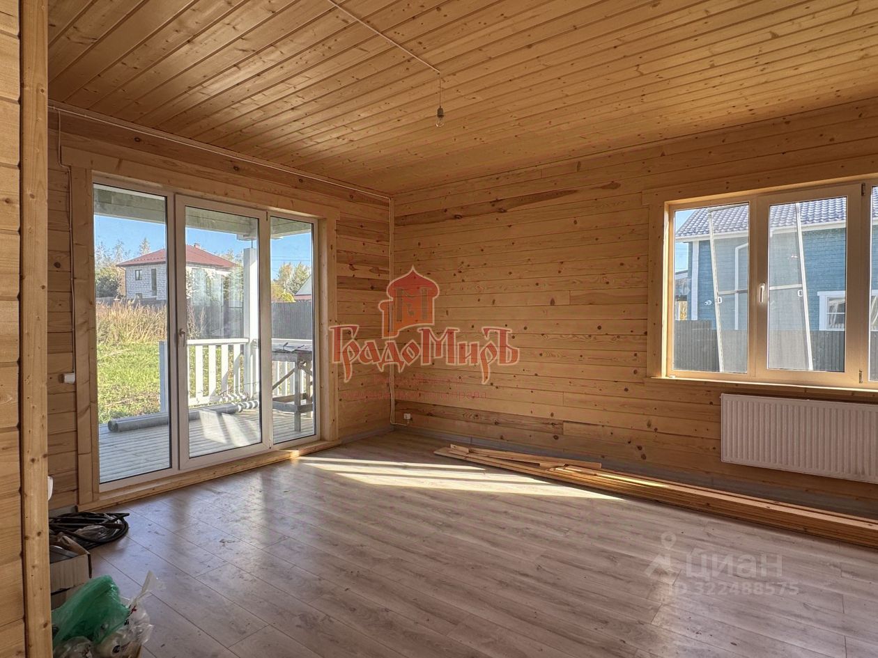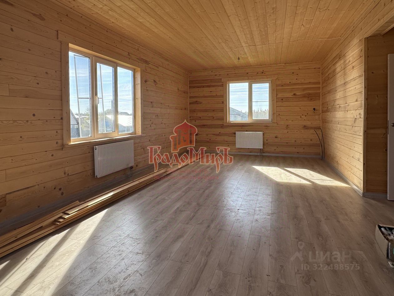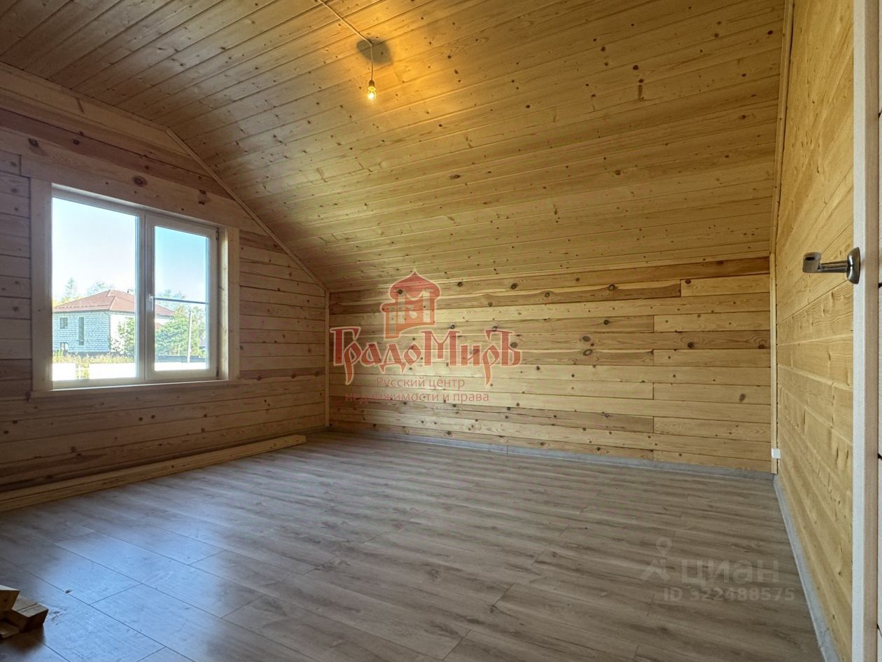 ДОМ 190 м2 с террасой Возведён из профилированного бруса камерной сушки (толщина стены 200мм) на монолитном фундаменте с перекрытием 1 этажа утепленной ж/б плитой. Фундамент был залит еще в 2024 году. В 2025 году был построен сруб под усадку. В этом году завершается внутренняя отделка. Теплый пол на водяном контуре от газового котла. Крыша - металлочерепица с утеплением, отливы и снегозадержатели в проходных зонах. Окна - двухкамерные стеклопакеты (3 стекла). Покрытие пола 1 и 2 этажа - плитка и ламинат. Установлена входная металлическая дверь с терморазрывом, межкомнатные двери высокого качества. Санузлы будут укомплектованы сантехникой. Планировка 1 этажа: Большая прихожая-тамбур с окном, котельная, светлая кухня - гостиная с панорамным окном и выходом на террасу, спальня, совмещенный с/у с установленной сантехникой. В зоне кухни подведены все коммуникации и газ для газовой плиты. Планировка 2 этажа: Три больших спальни, гардероб и совмещенный с/у, оборудованный сантехникой. Из двух спален есть выход на балкон с панорамным видом на поле и лес.