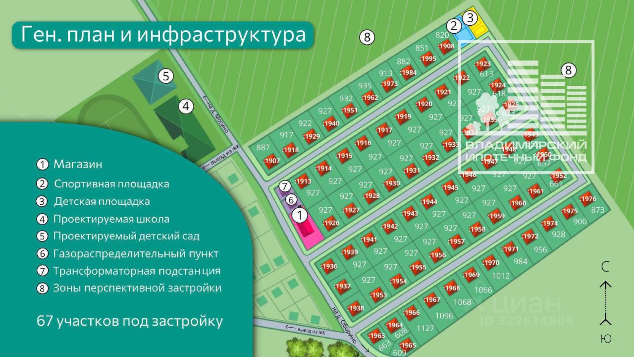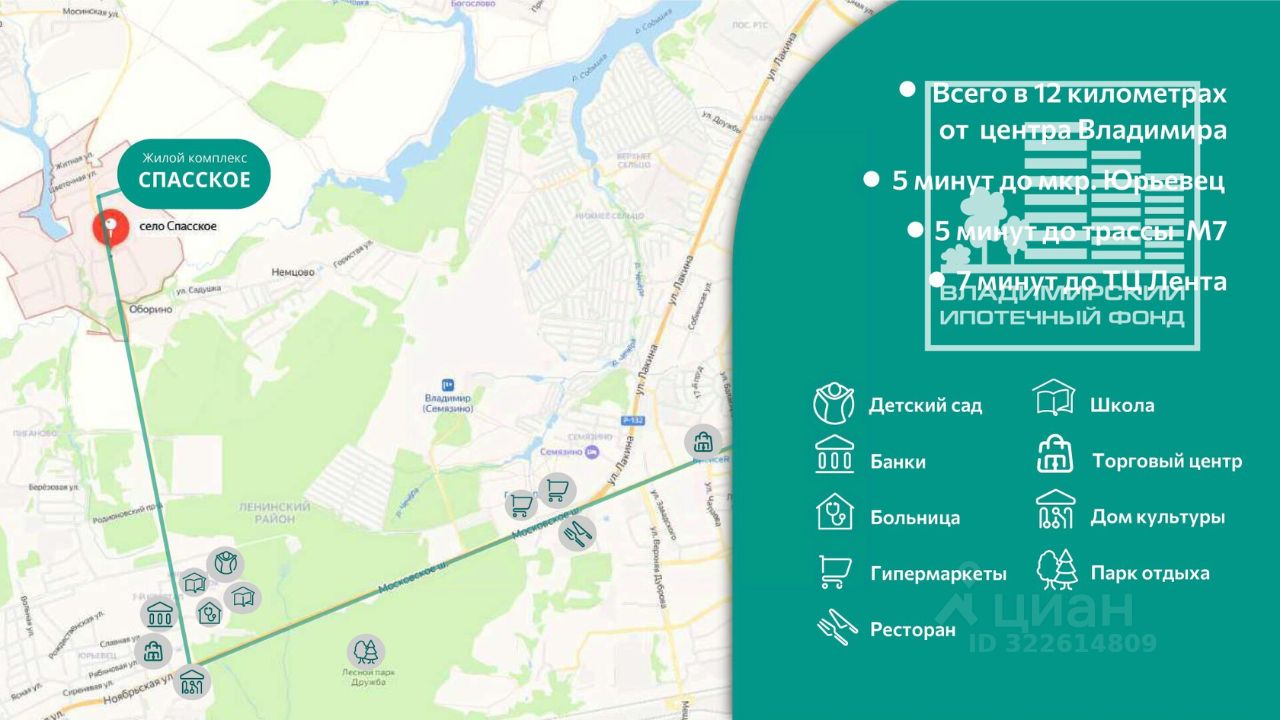 V 12 км от центра Владимира V 5 мин до мкр. Юрьевец и трассы М7 V 7 мин до ТЦ Лента